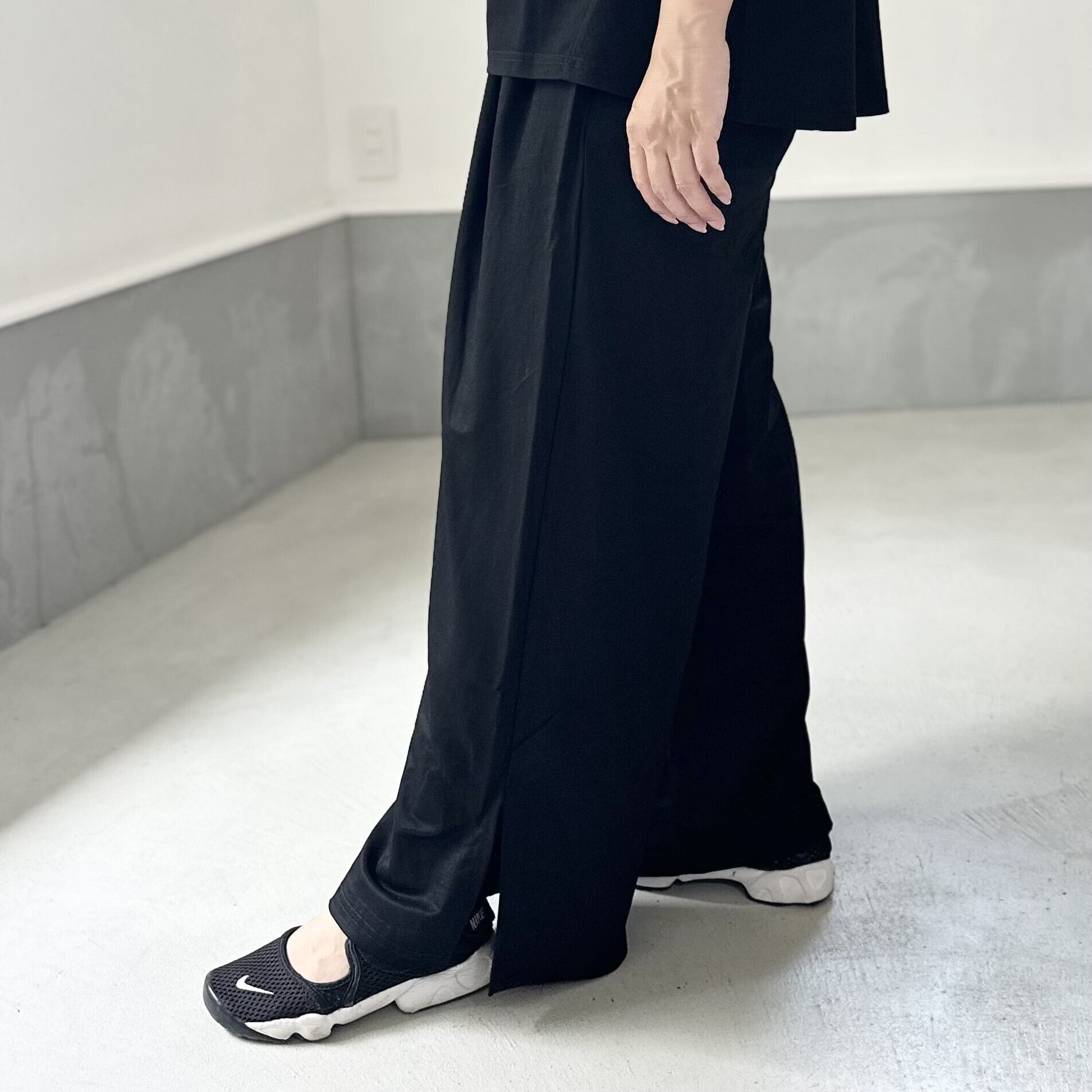 接触冷感素材のサイドスリット イージーワイドパンツになります。