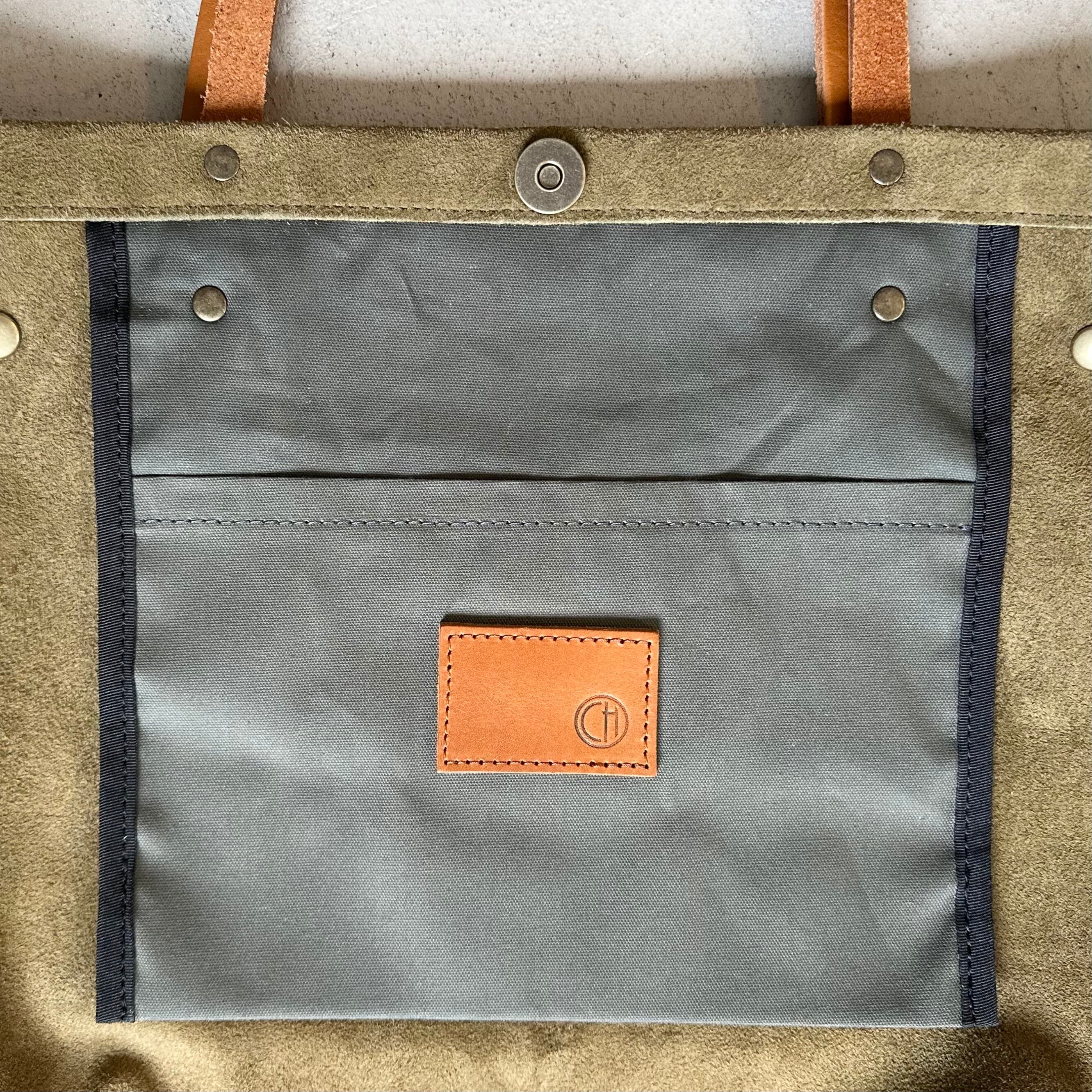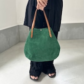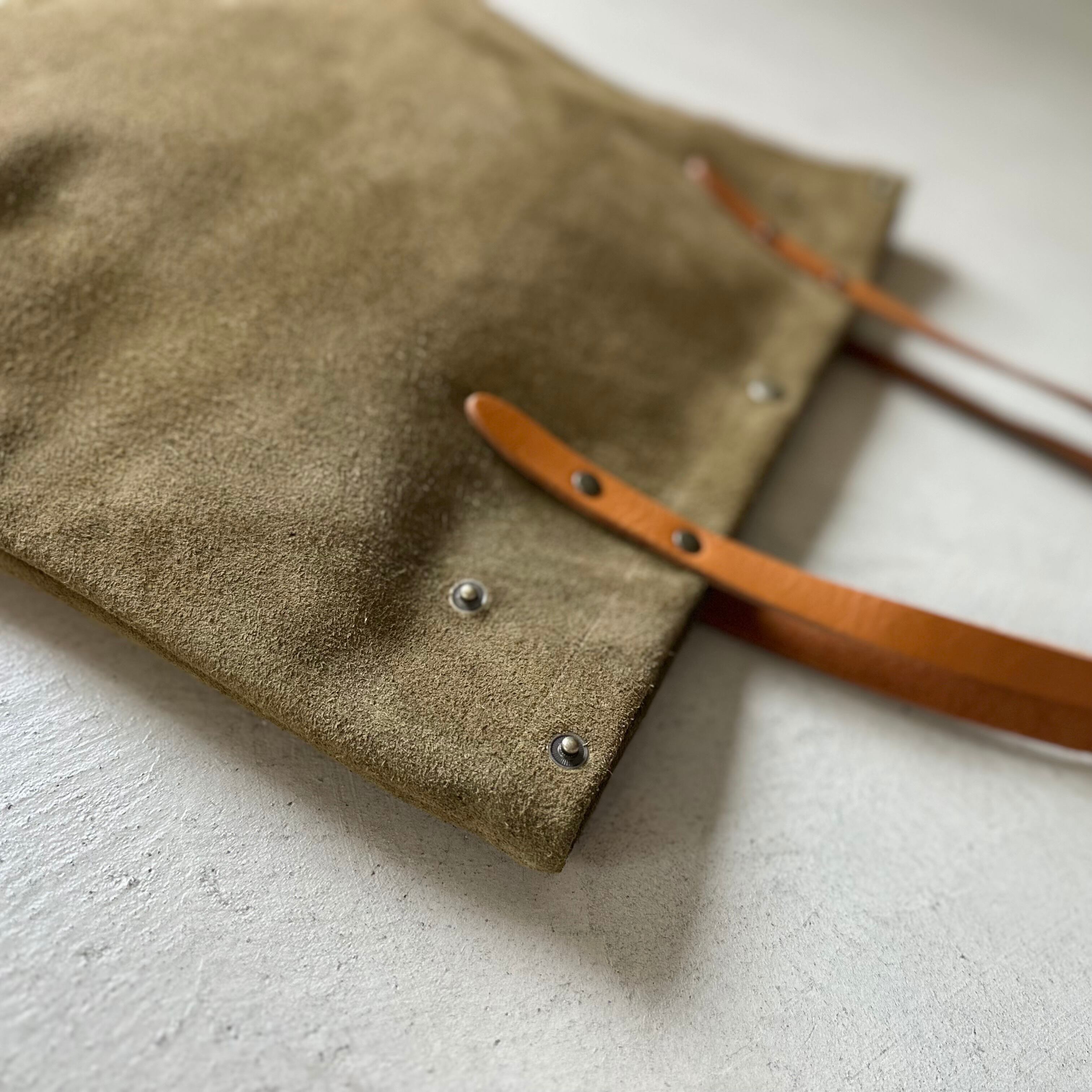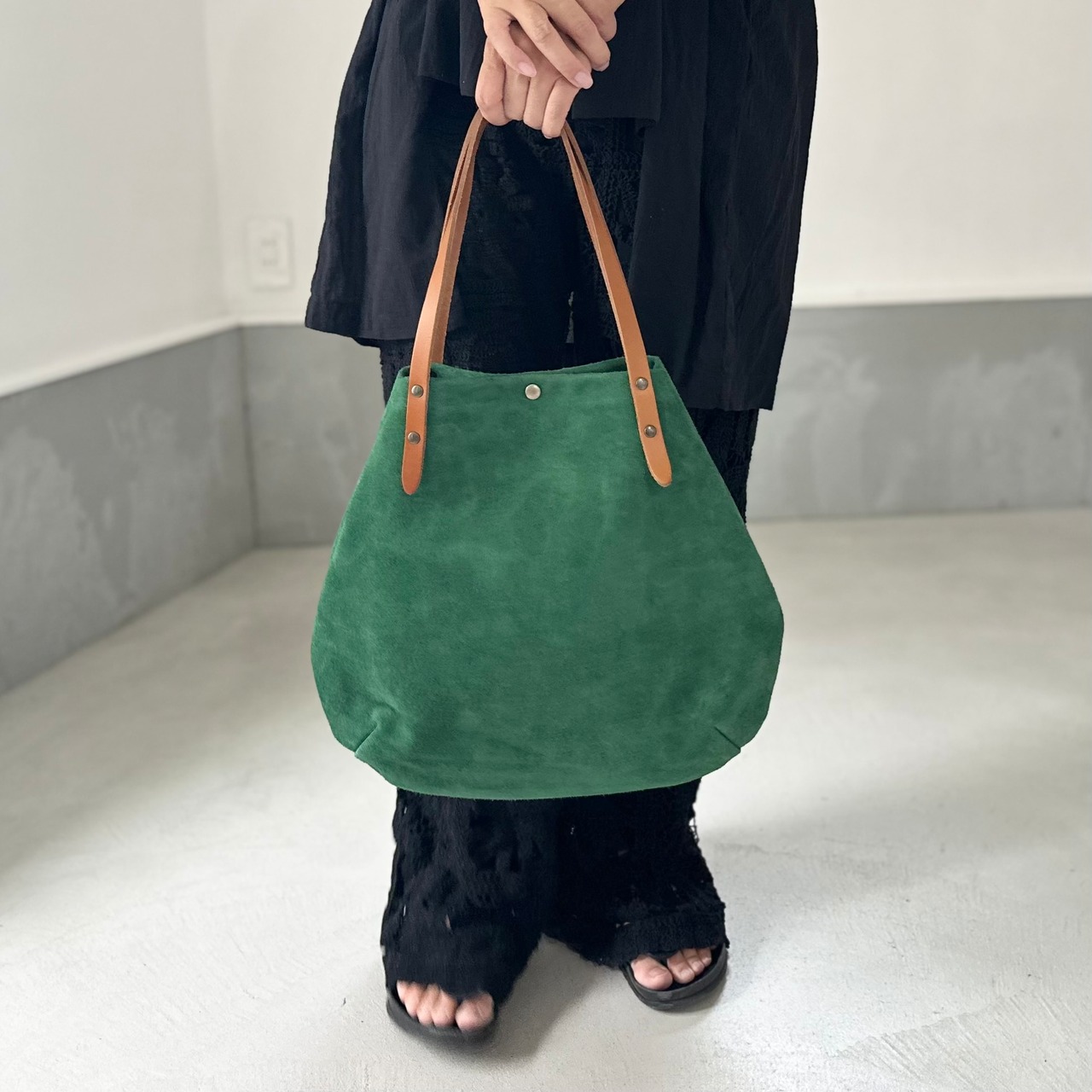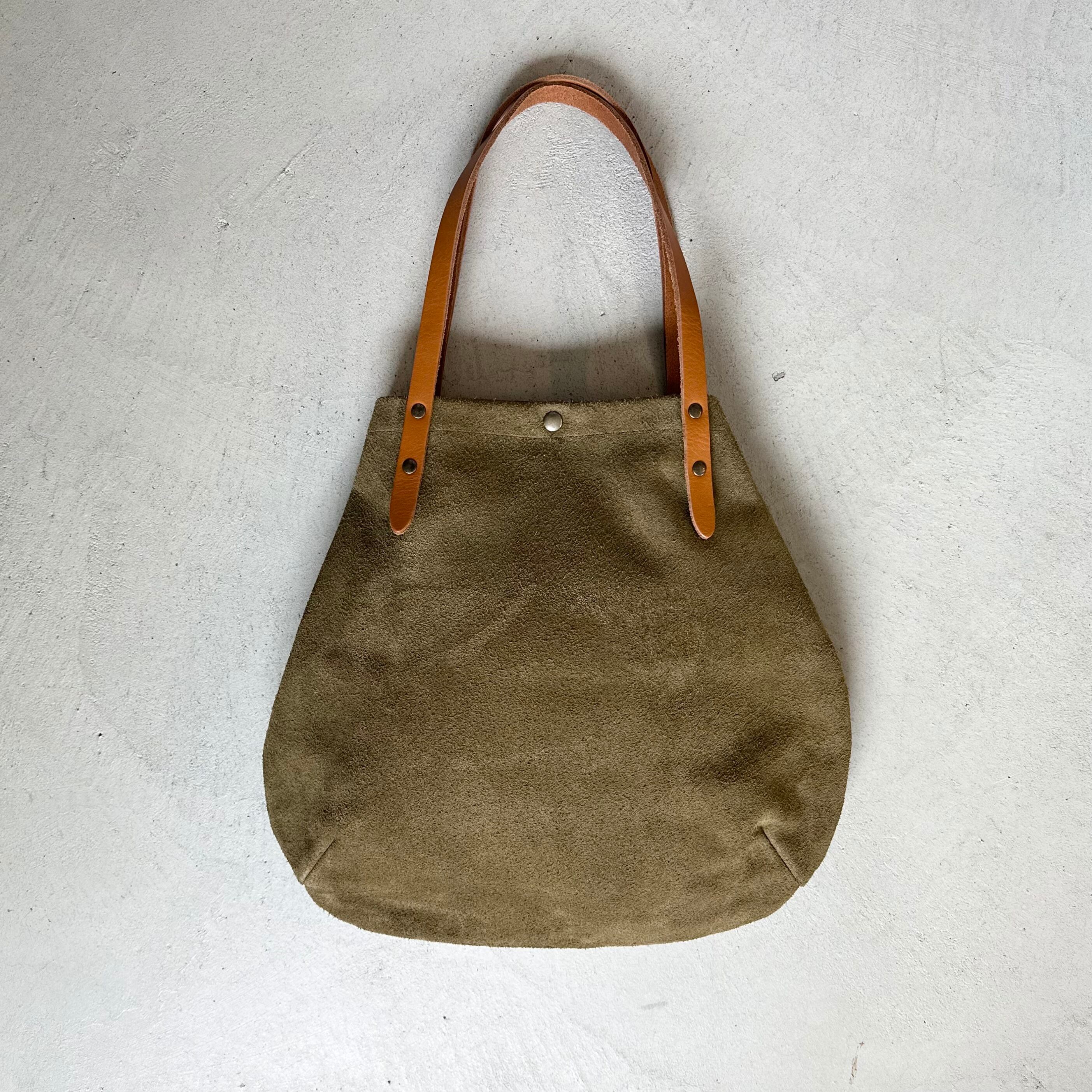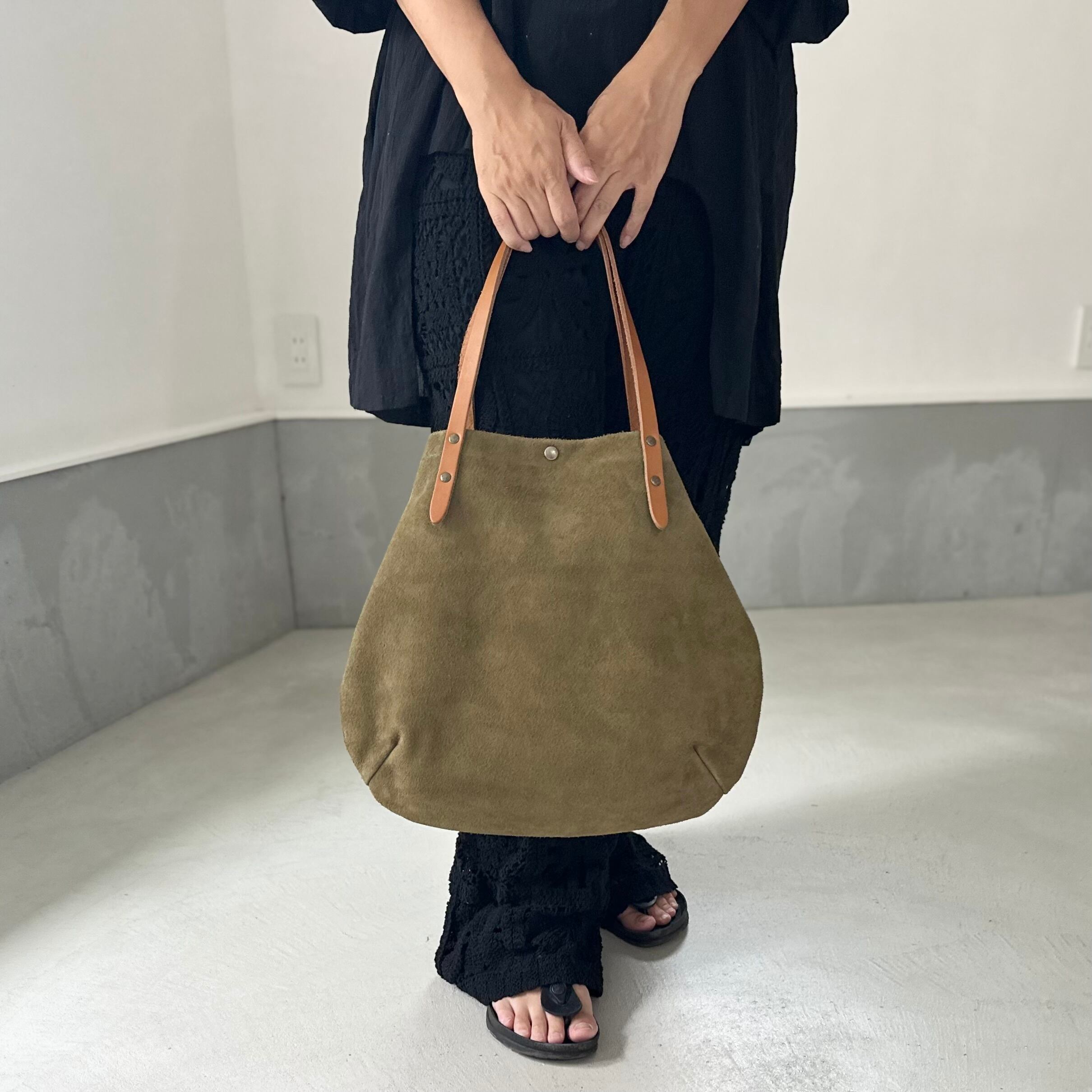 『2025登場Mサイズ』牛床ベロアと極厚オイルヌメの丸型トートバッグ M-size【オリーブ】