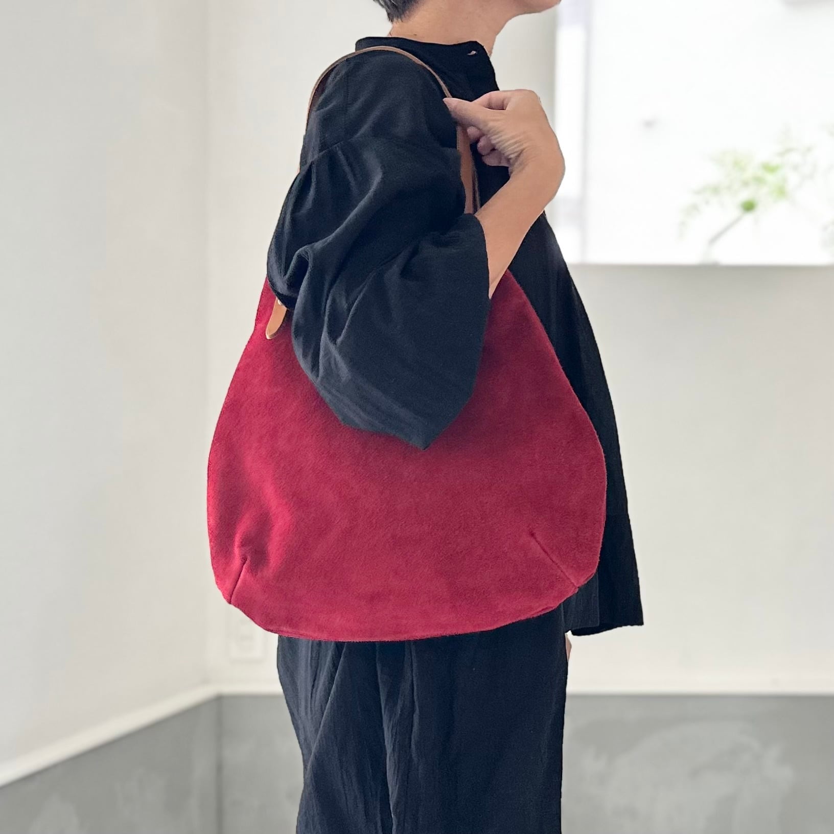 当店大人気の牛床ベロア丸型トートに、肩掛けができるMサイズが登場しました!