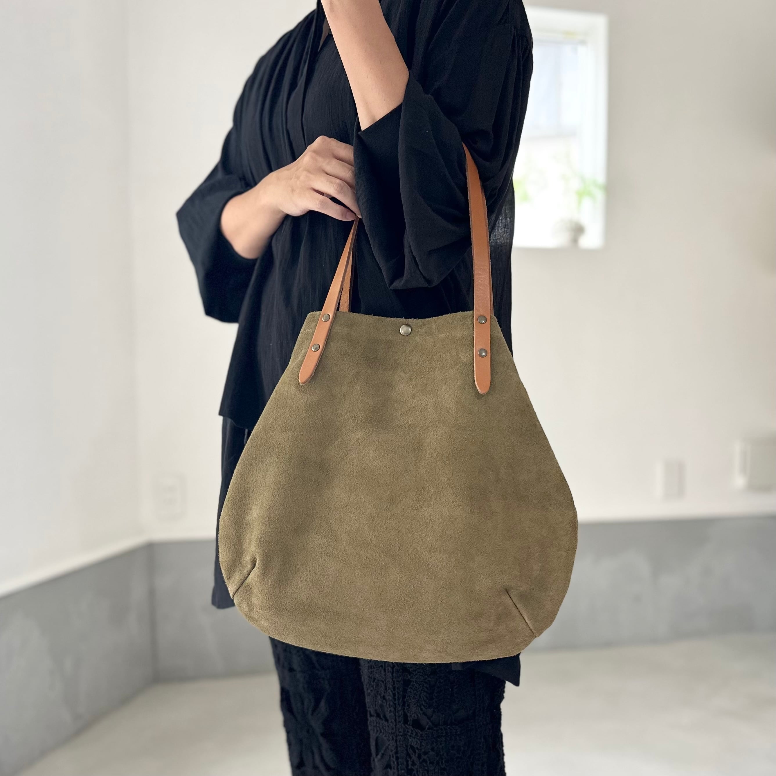 当店大人気の牛床ベロア丸型トートに、肩掛けができるMサイズが登場しました!