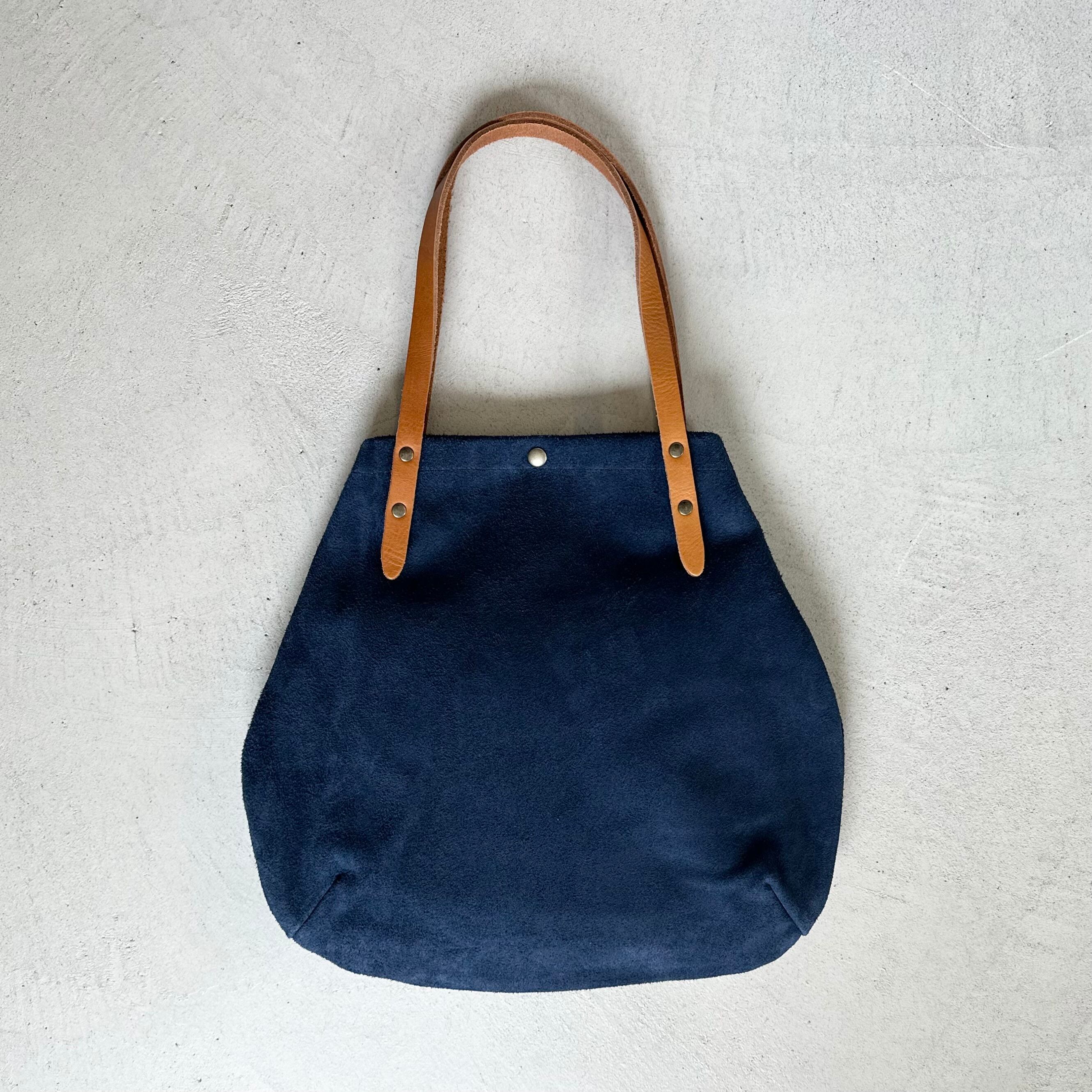 『2025登場Mサイズ』牛床ベロアと極厚オイルヌメの丸型トートバッグ M-size【ネイビー】