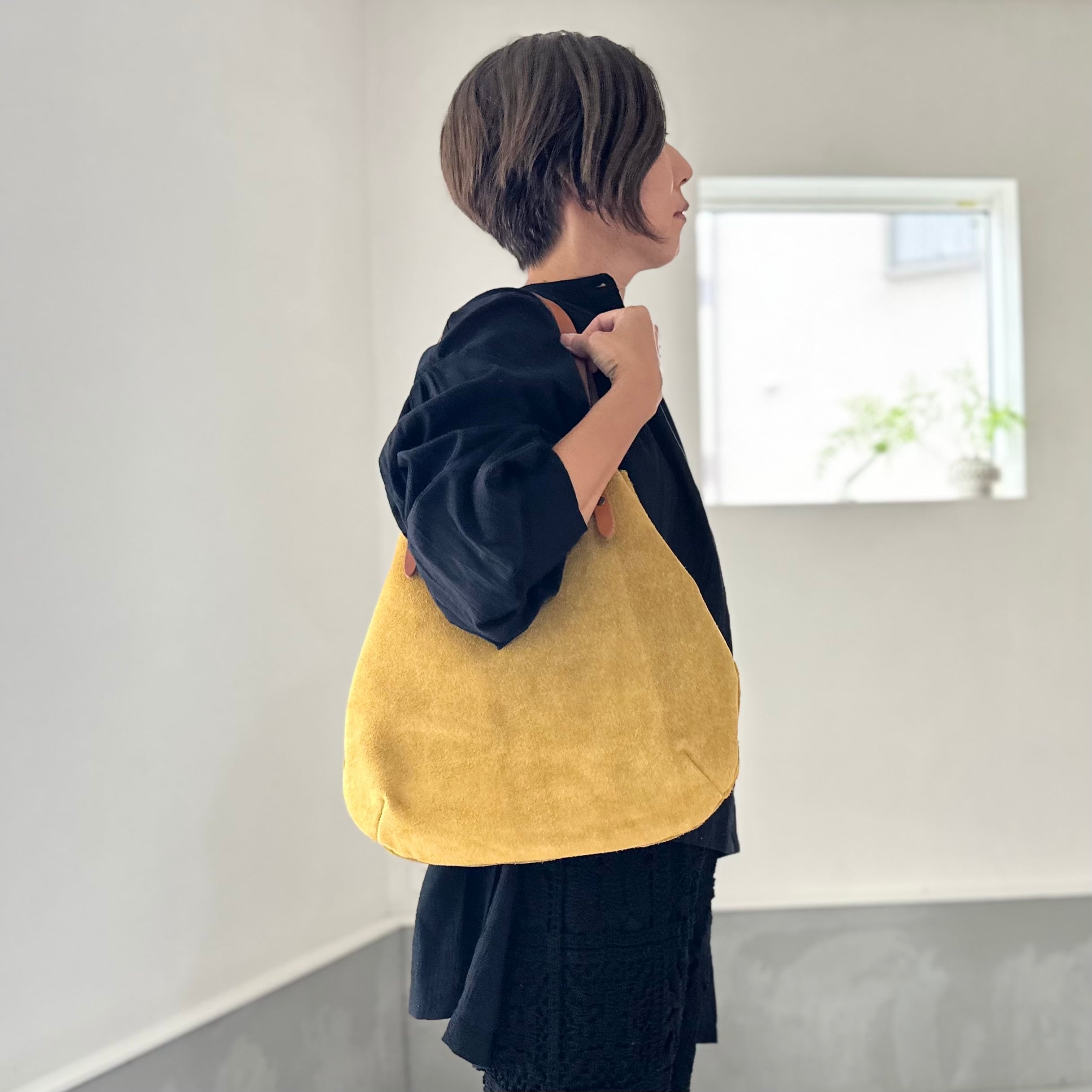当店大人気の牛床ベロア丸型トートに、肩掛けができるMサイズが登場しました!
