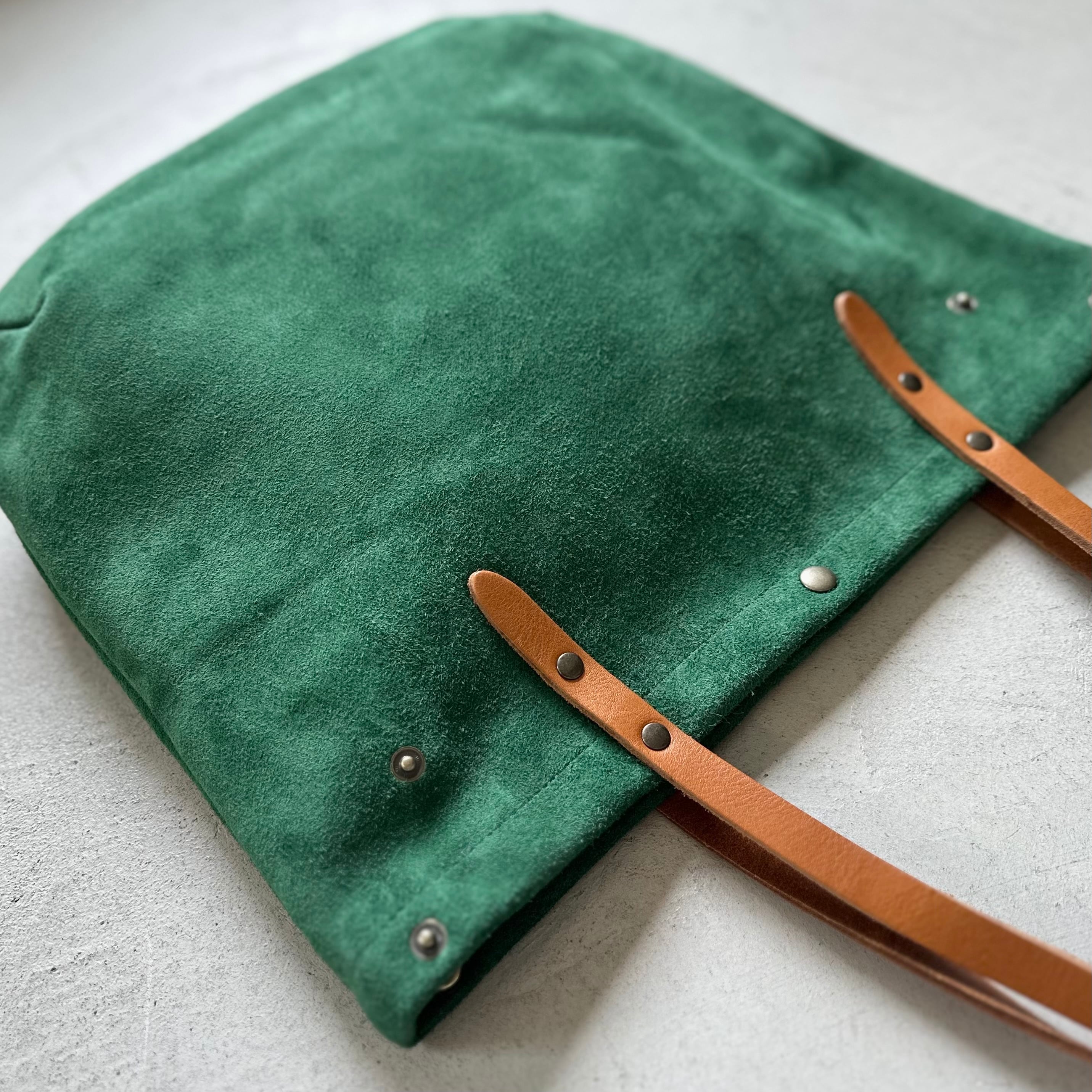 『2025登場Mサイズ』牛床ベロアと極厚オイルヌメの丸型トートバッグ M-size【グリーン】