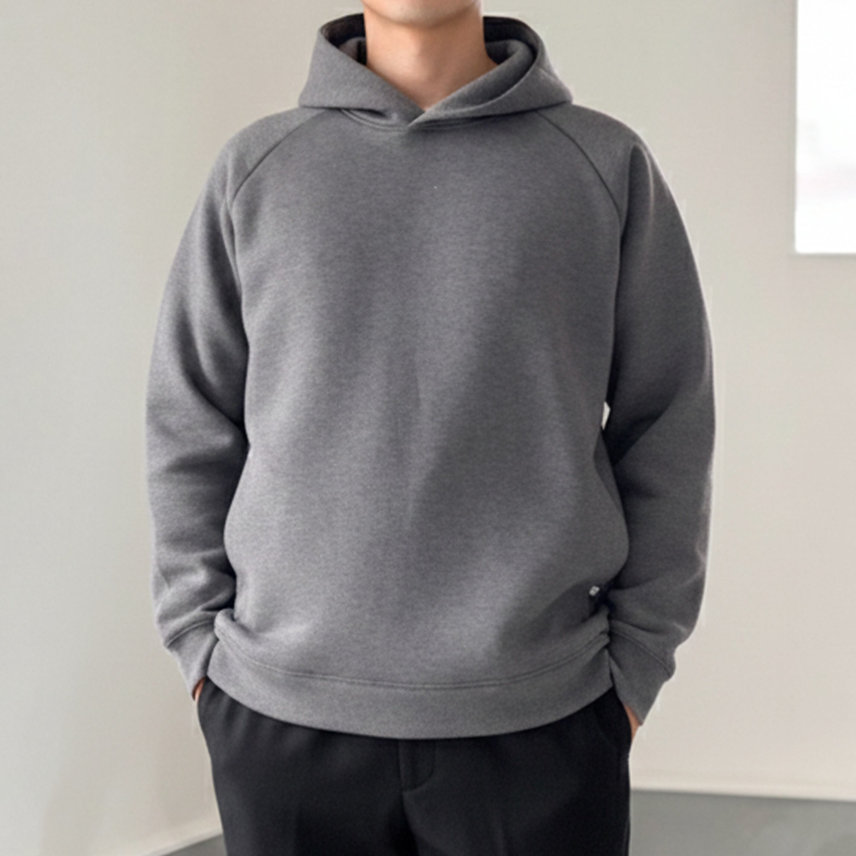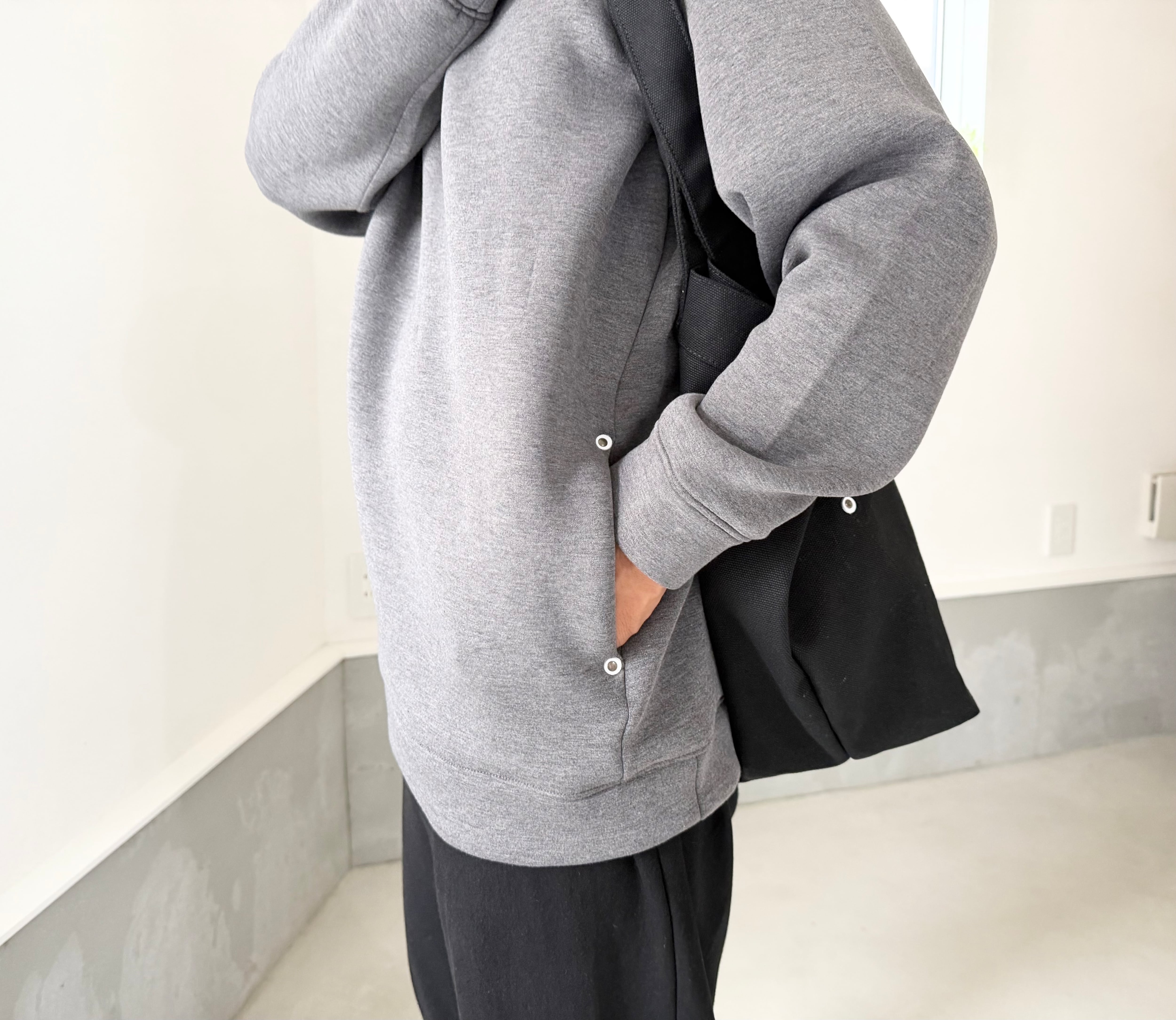 『2026新色』秋〜春まで!【ユニセックス 】ダンボールニット シームポケット付プルオーバーパーカー【グレー】