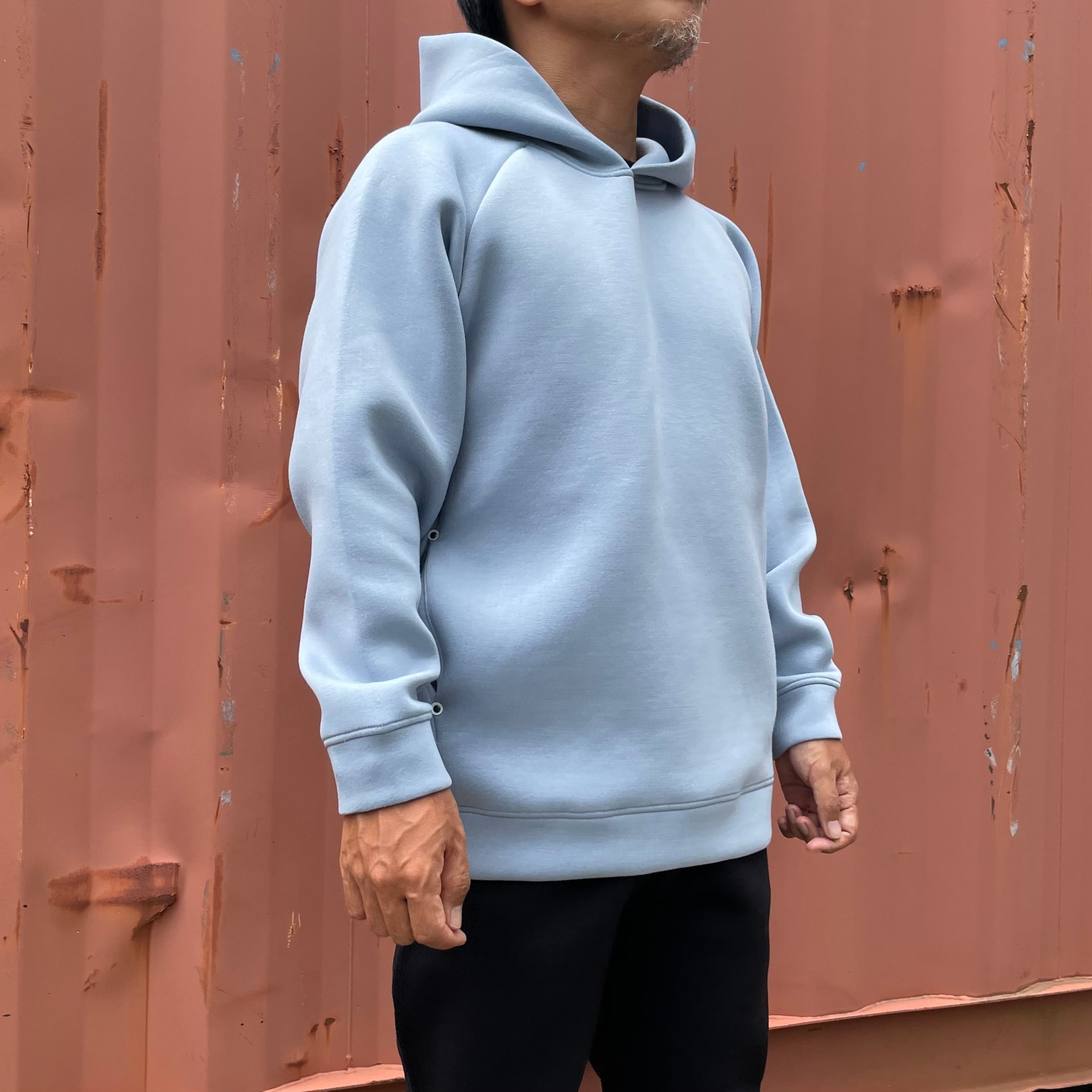 立ち上がりの良いフードと、腕を動かしやすいラグラン仕様、