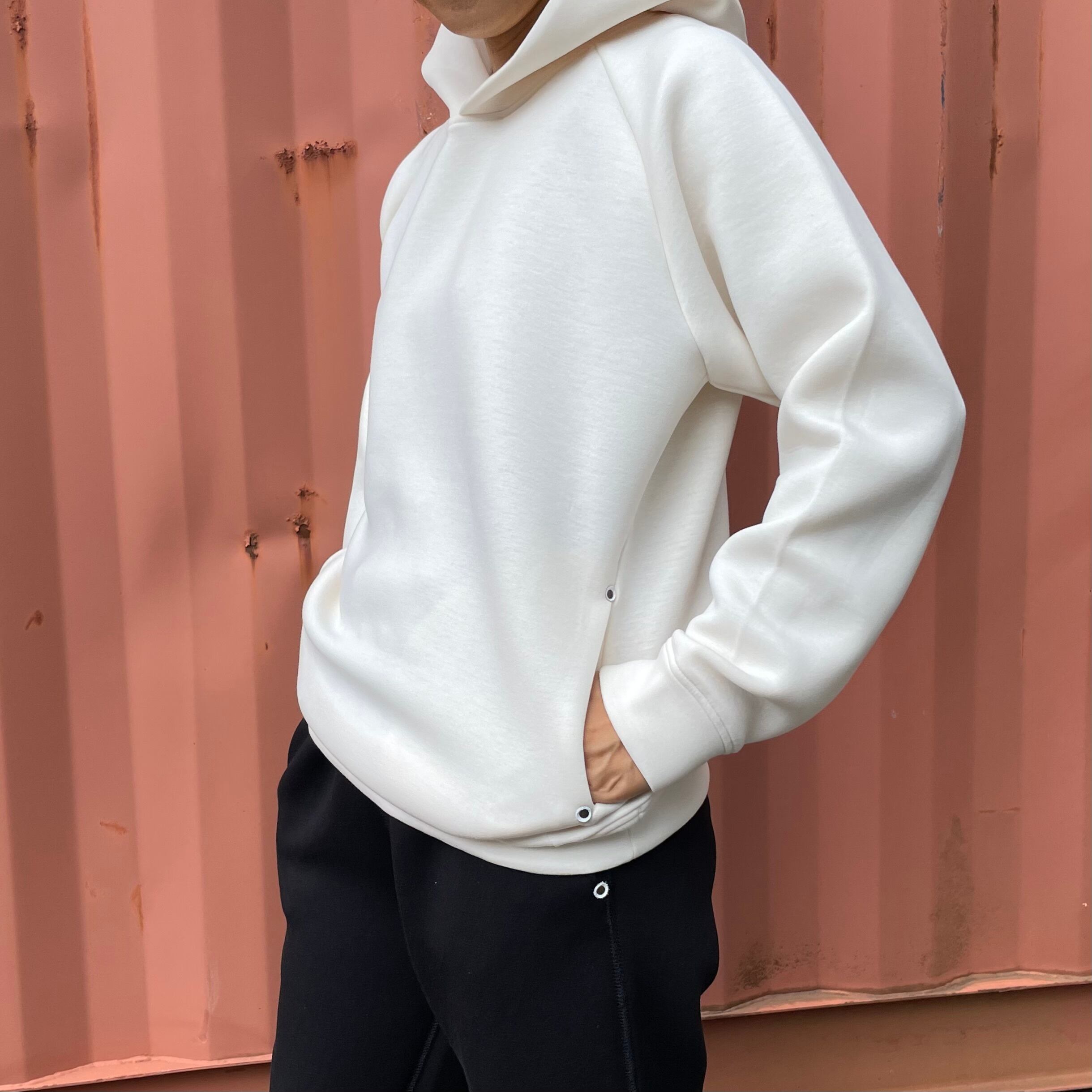 ダンボールニットのシームポケット付プルオーバーパーカー【ユニセックス 】になります。