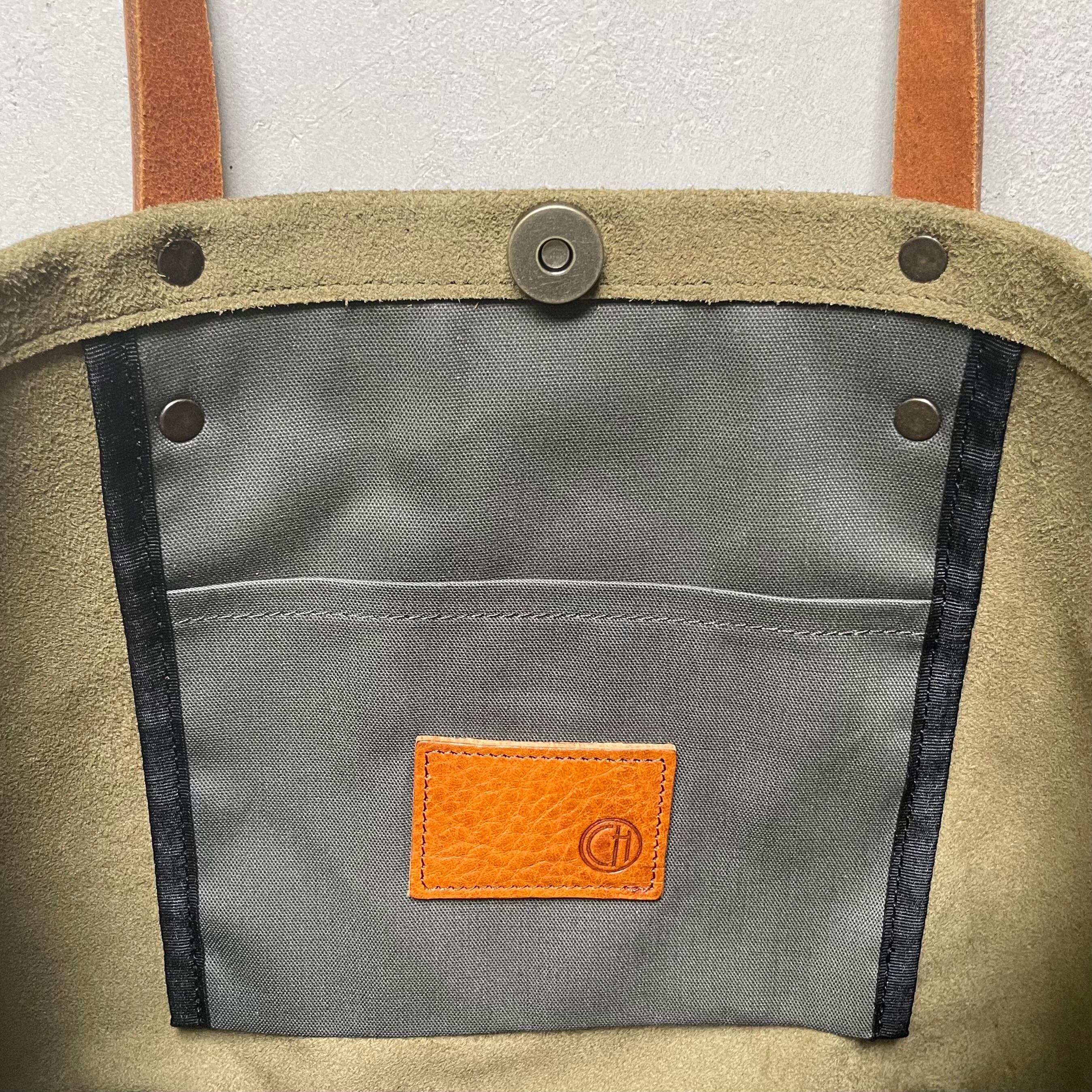 牛床ベロアと極厚のオイルヌメを使用したSサイズ丸型トートバッグです。