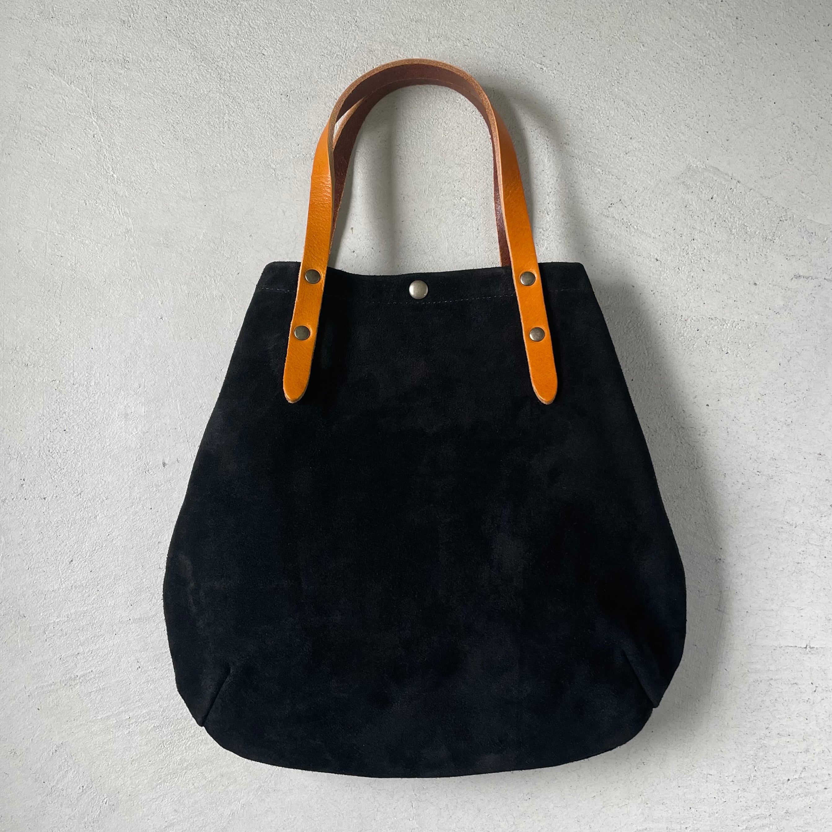 牛床ベロアと極厚のオイルヌメを使用したSサイズ丸型トートバッグです。
