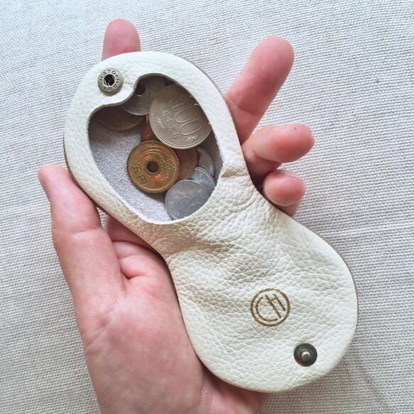 牛シュリンクレザーのシェル型コインケース バイカラー[モカ×ホワイト]