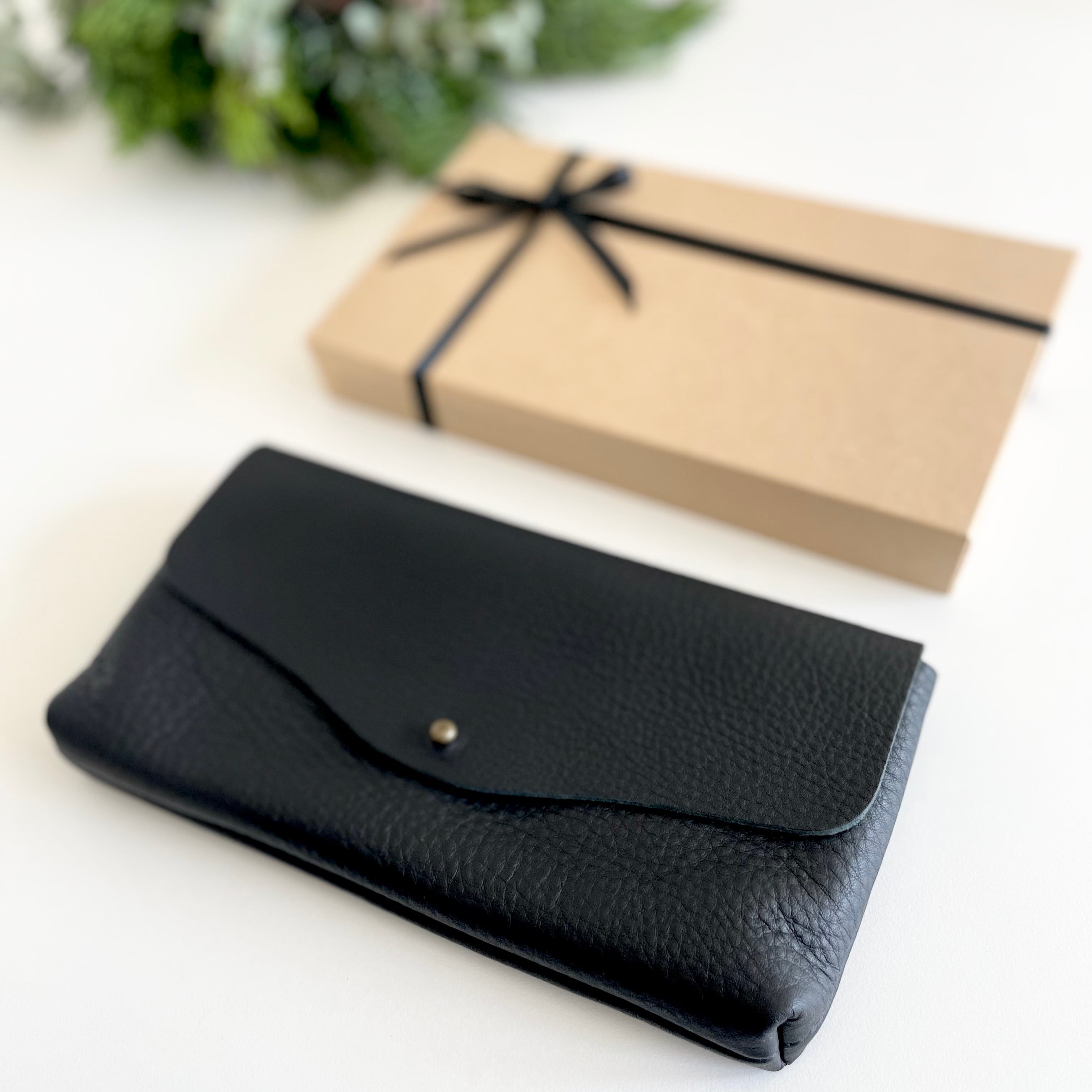 牛シュリンクレザーと牛床ベロアのシンプル長財布[ブラック]