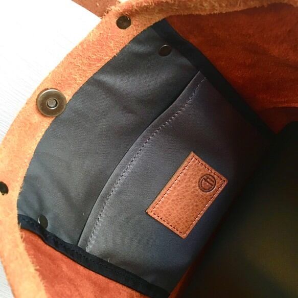 革素材を存分に味わって頂きたいので、裏地は付けずスエード調の床面をそのまま使用しています。