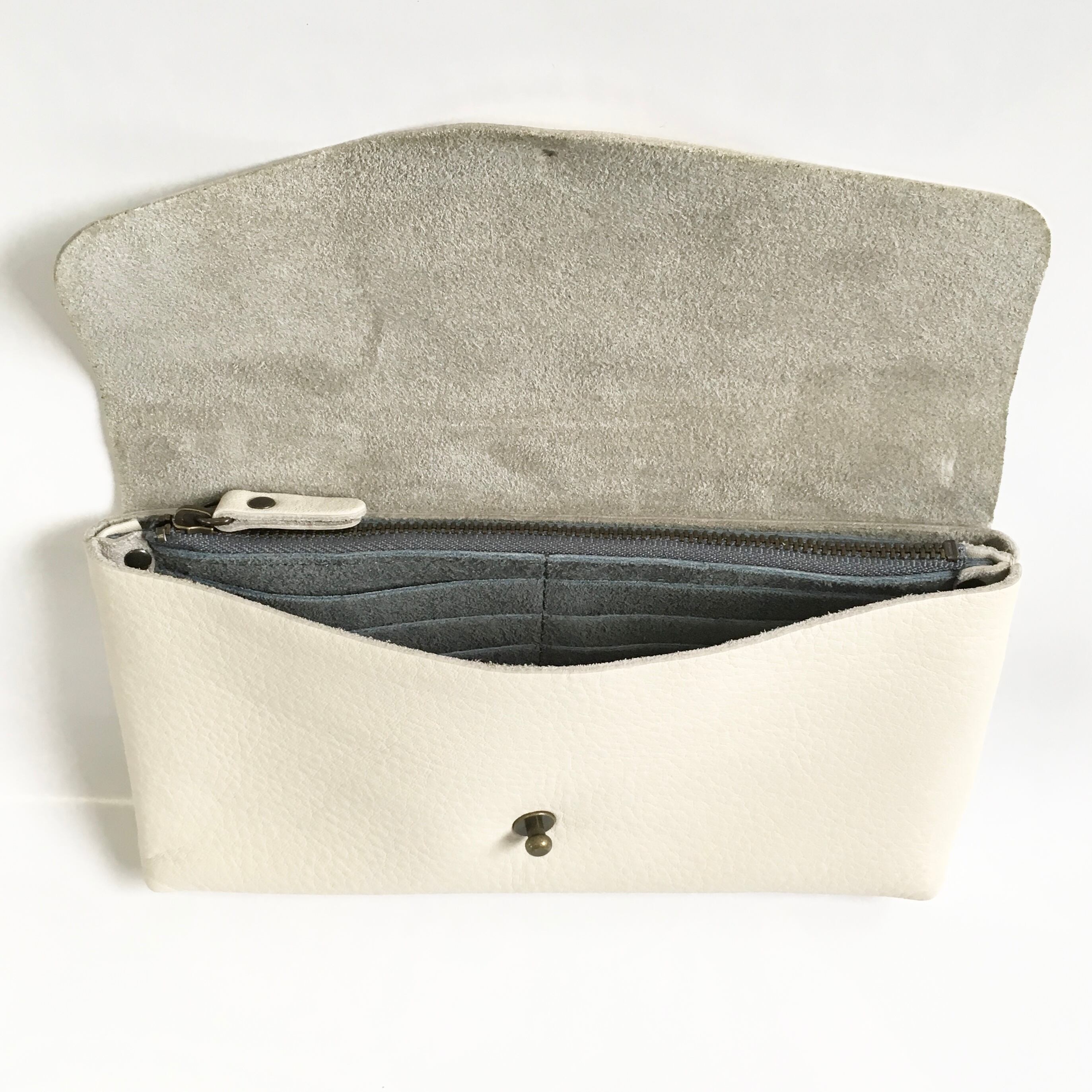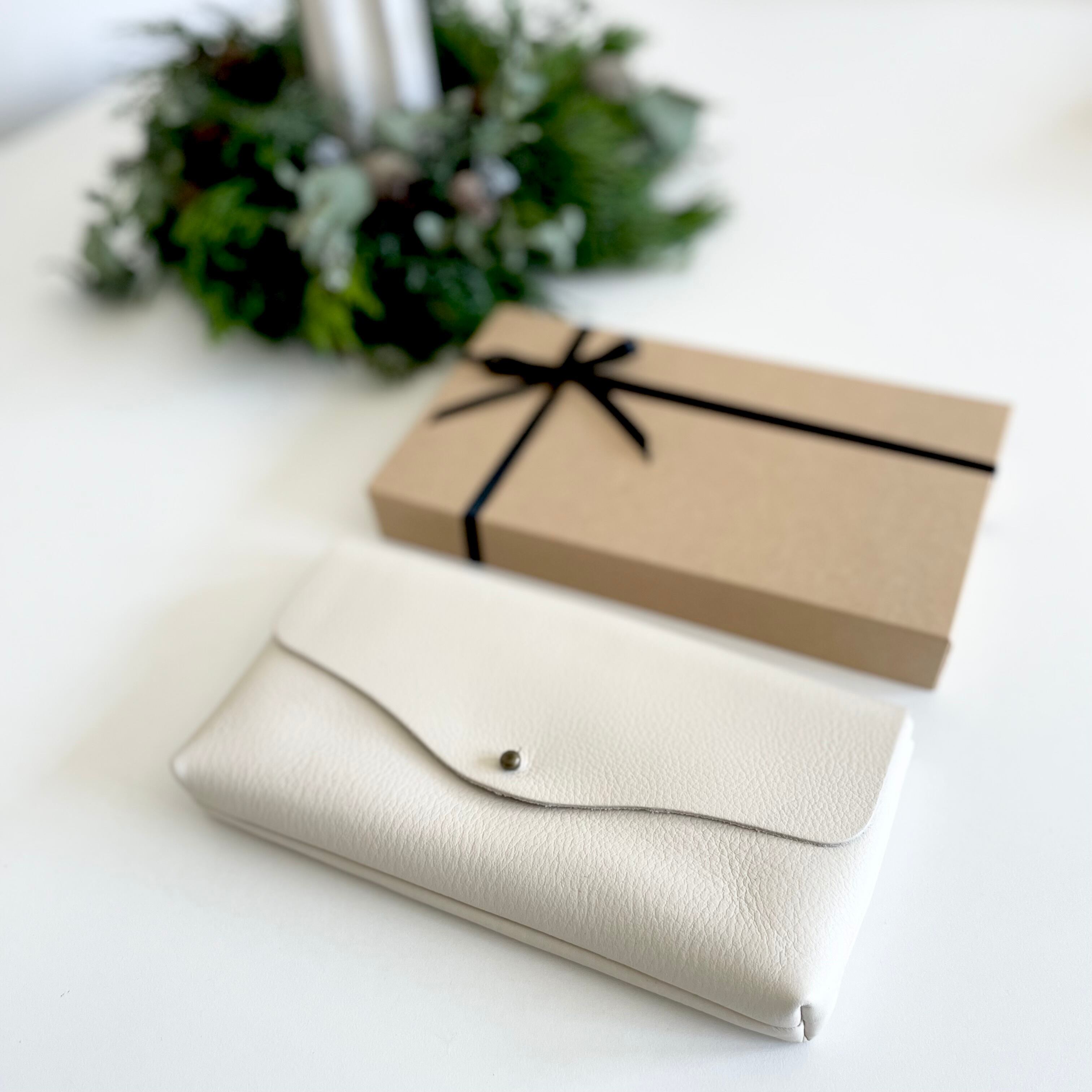 牛シュリンクレザーと牛床ベロアのシンプル長財布[オフホワイト]