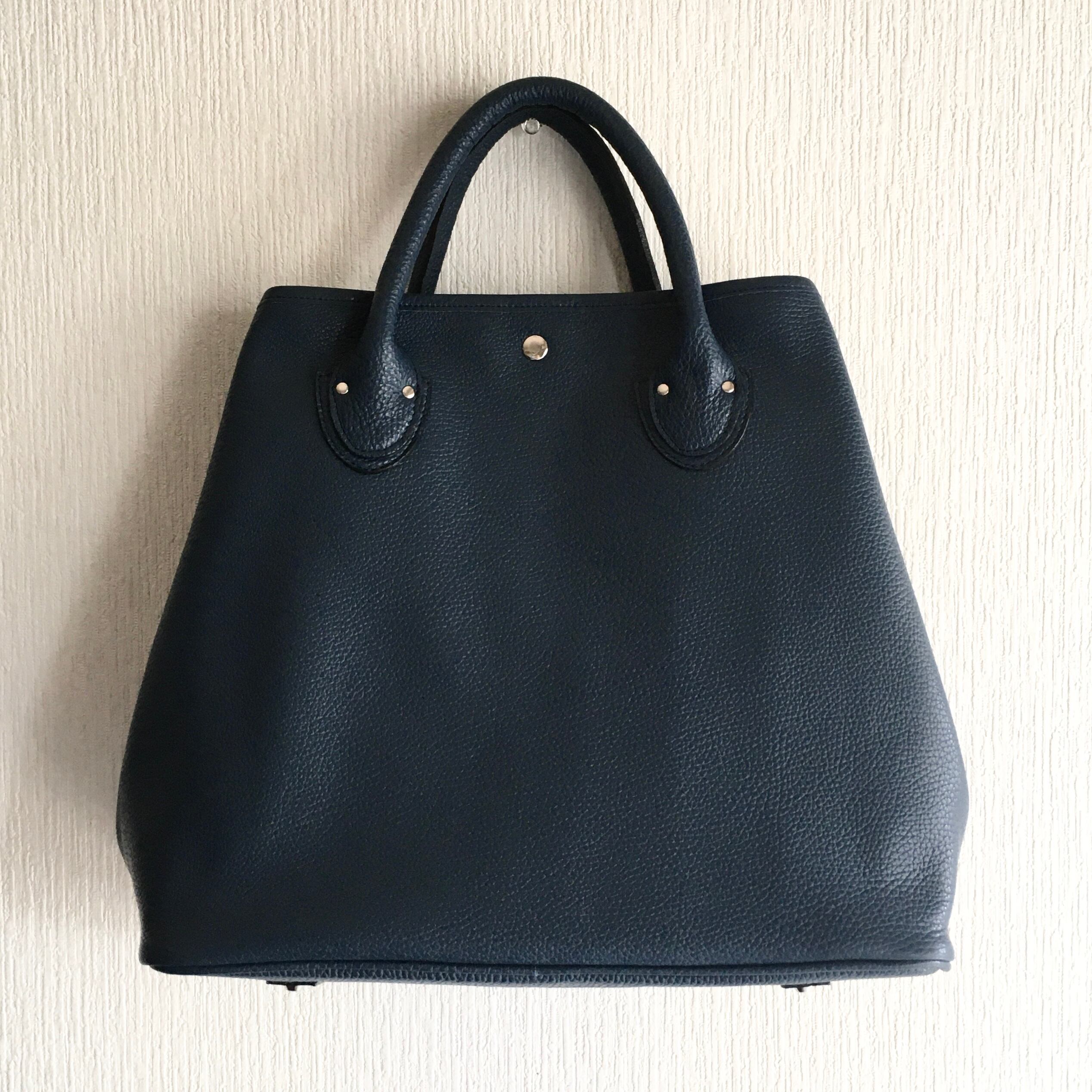 A4サイズ対応 イタリアンレザーのトートバッグ【ネイビー】