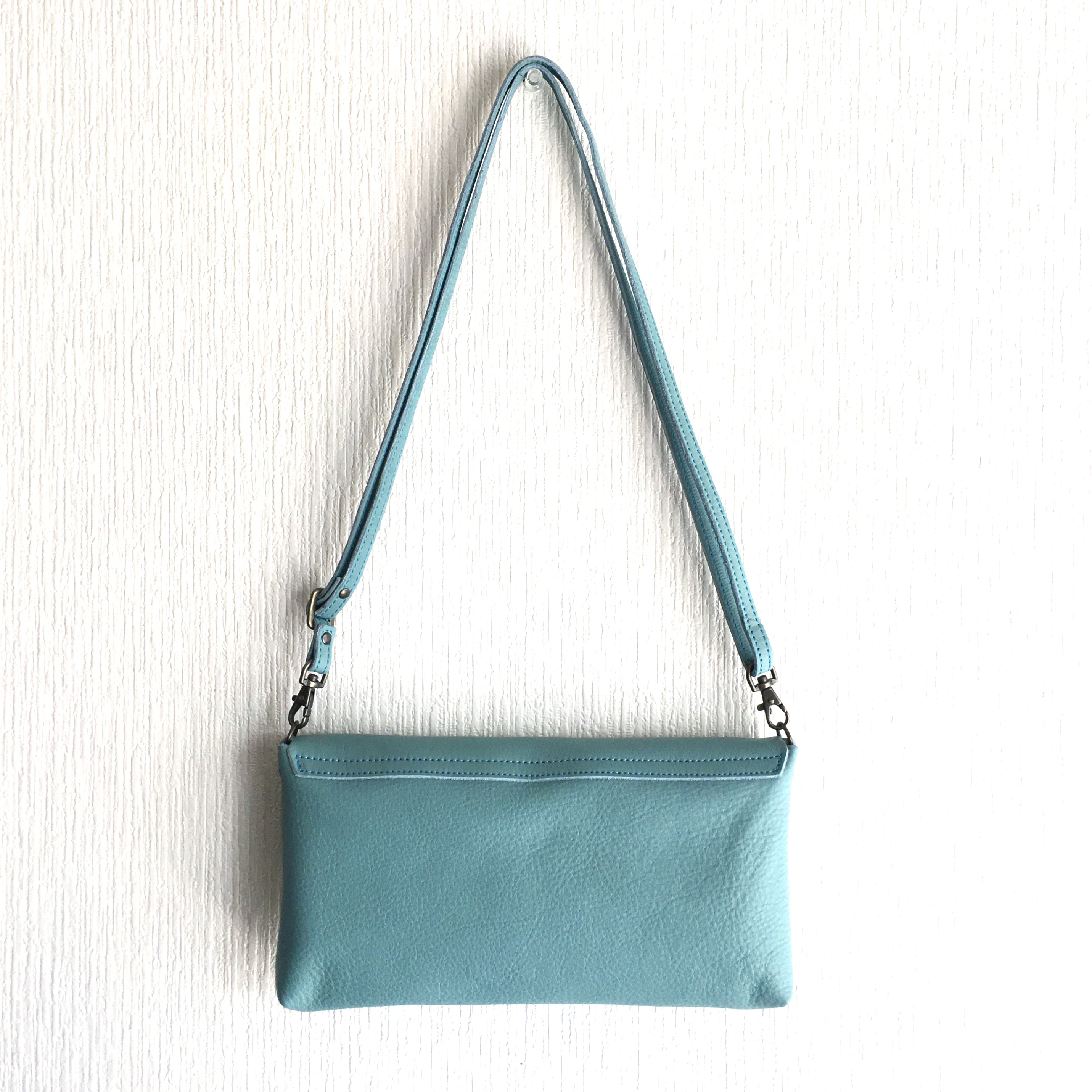 牛シュリンクレザーのシンプルショルダーバッグ[スカイブルー]