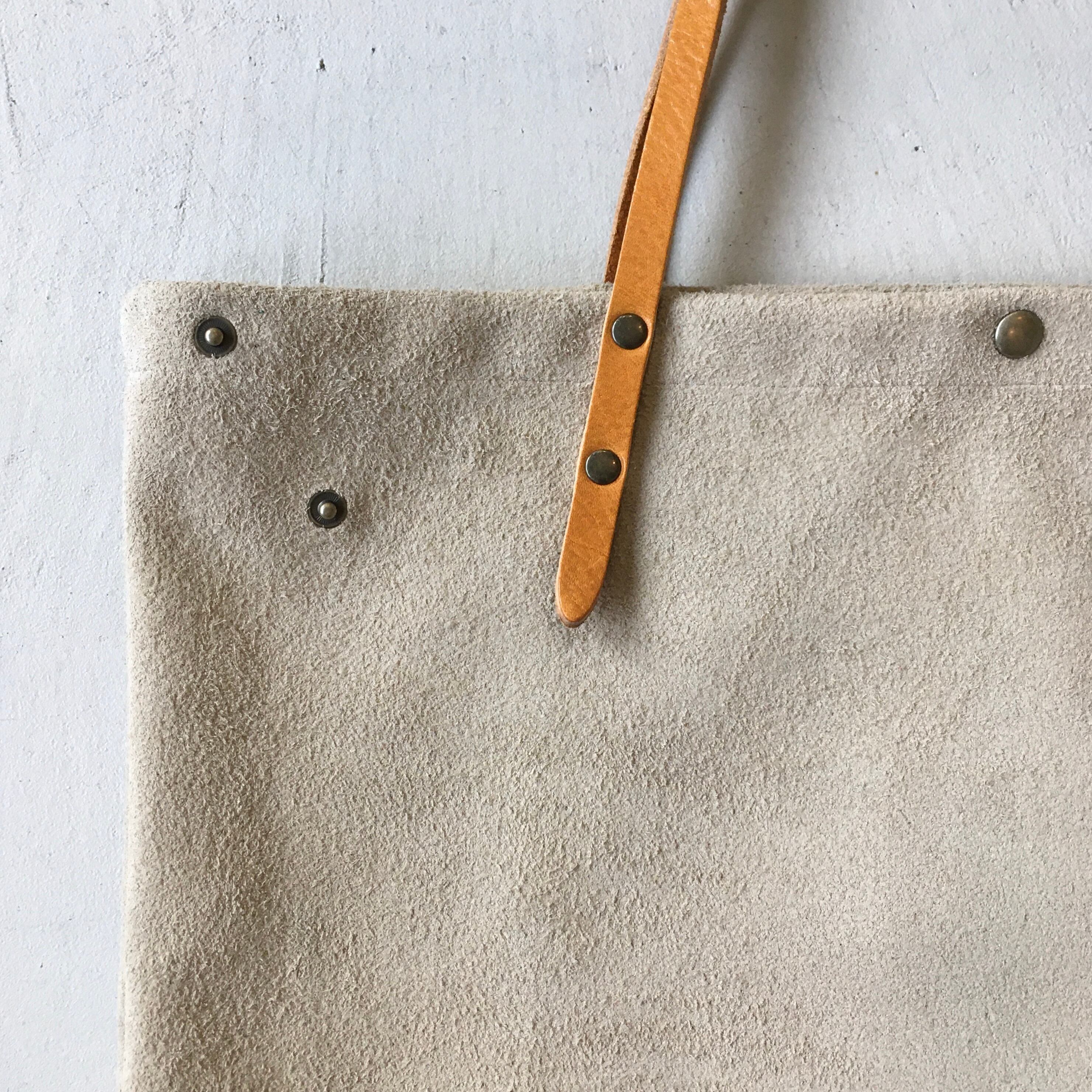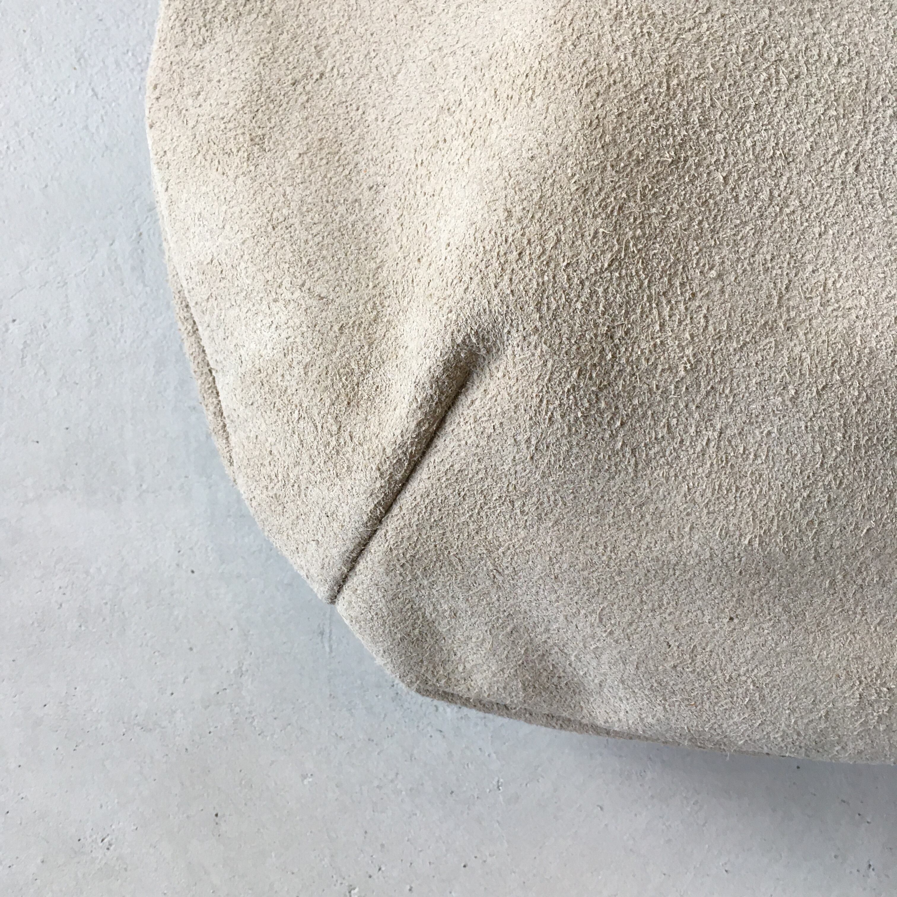 革素材を存分に味わって頂きたいので、裏地は付けずスエード調の床面をそのまま使用しています。
