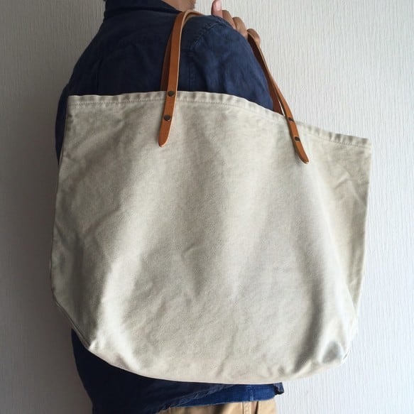 バイオウォッシュ8号帆布と極厚オイルヌメのトートバッグ【ベージュ】