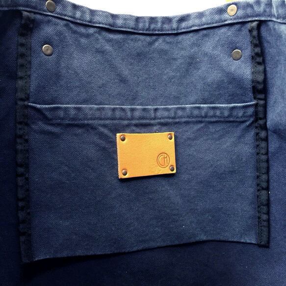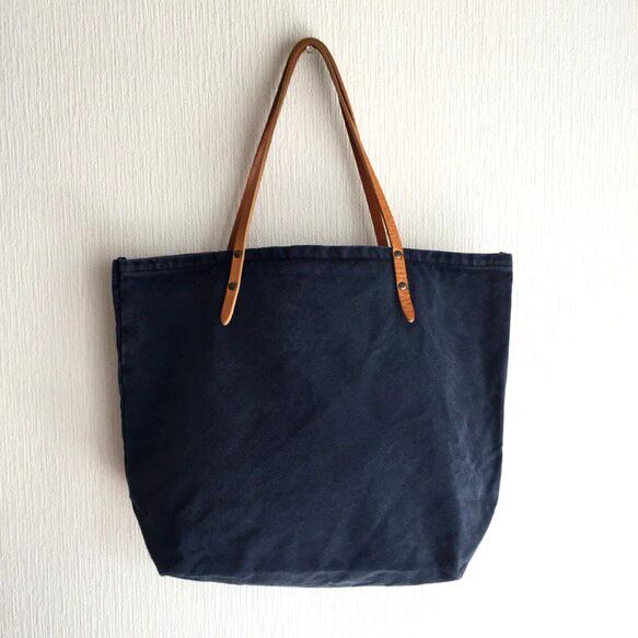 バイオウォッシュ8号帆布と極厚オイルヌメのトートバッグ【ネイビー】