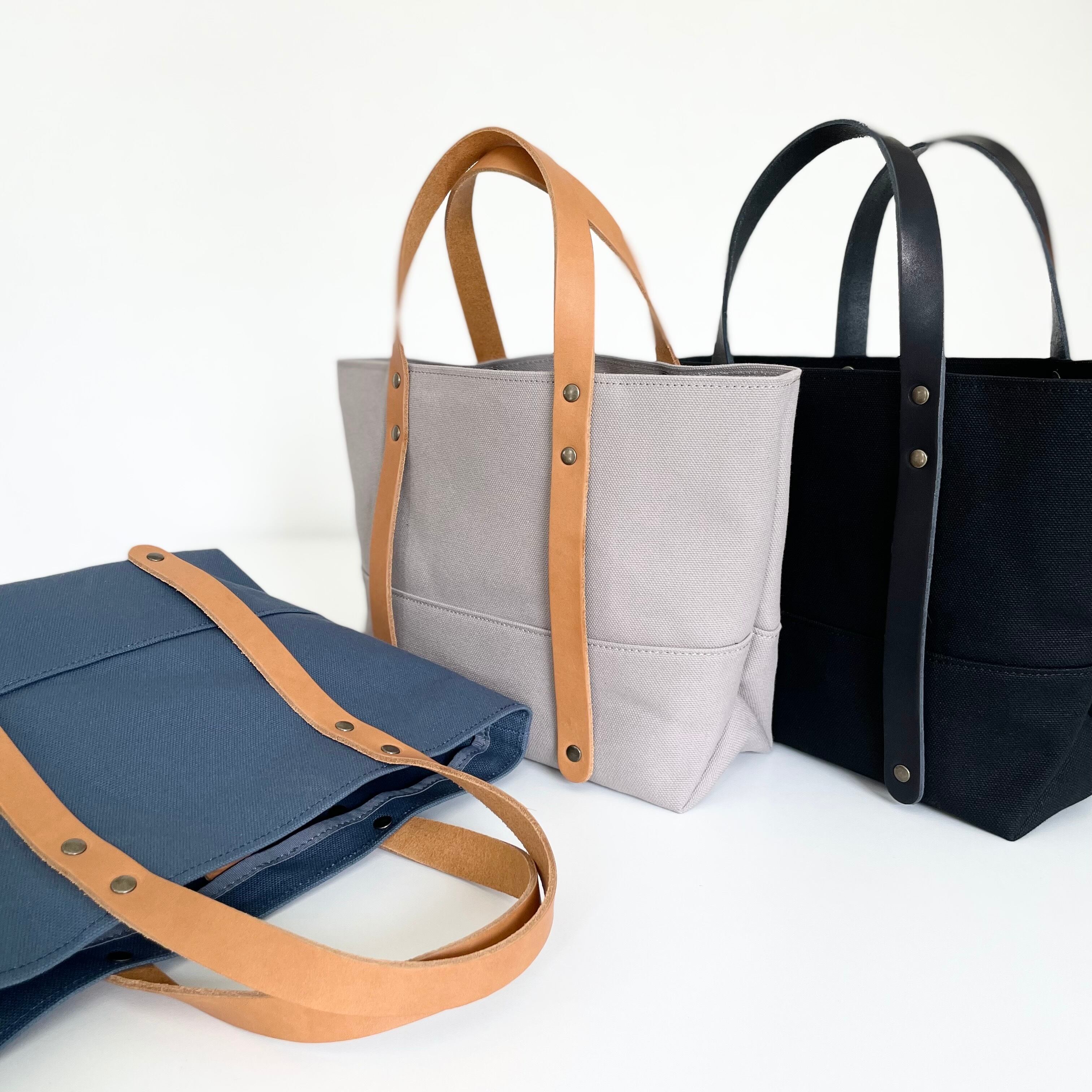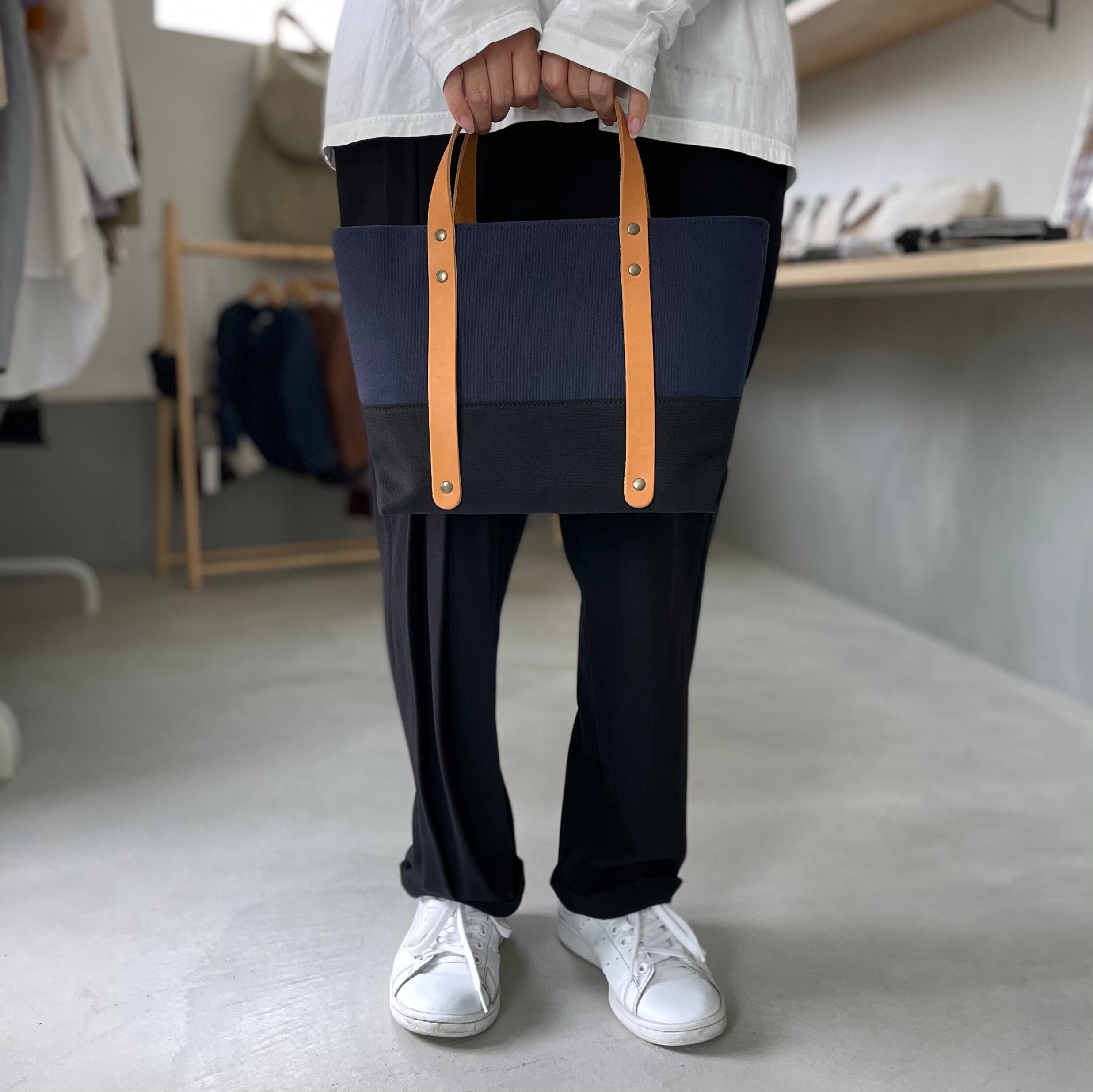 6号帆布と極厚ヌメ革のトートバッグ S-size【ネイビー×ブラック】