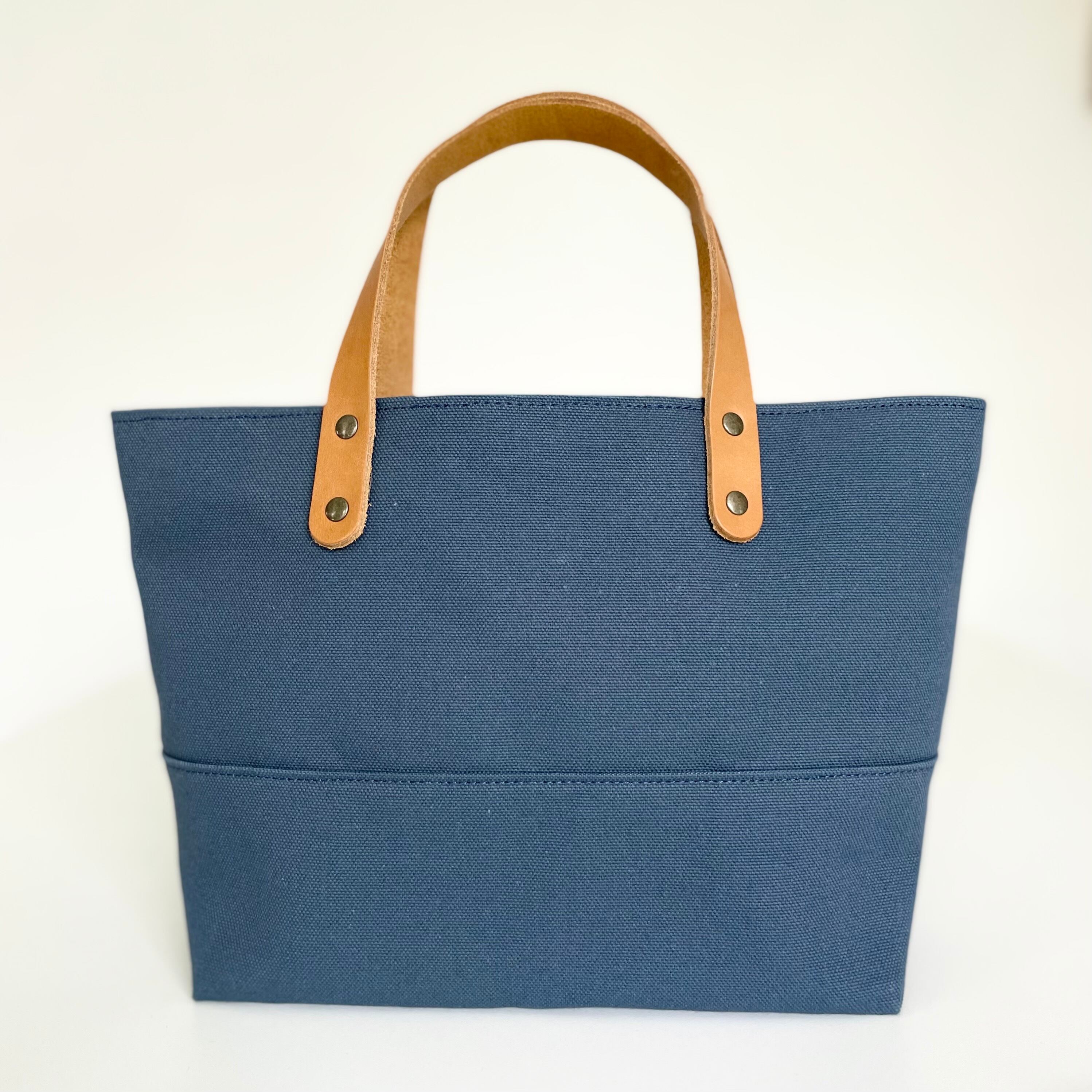 6号帆布と極厚ヌメ革のトートバッグ S-size【ブルー】