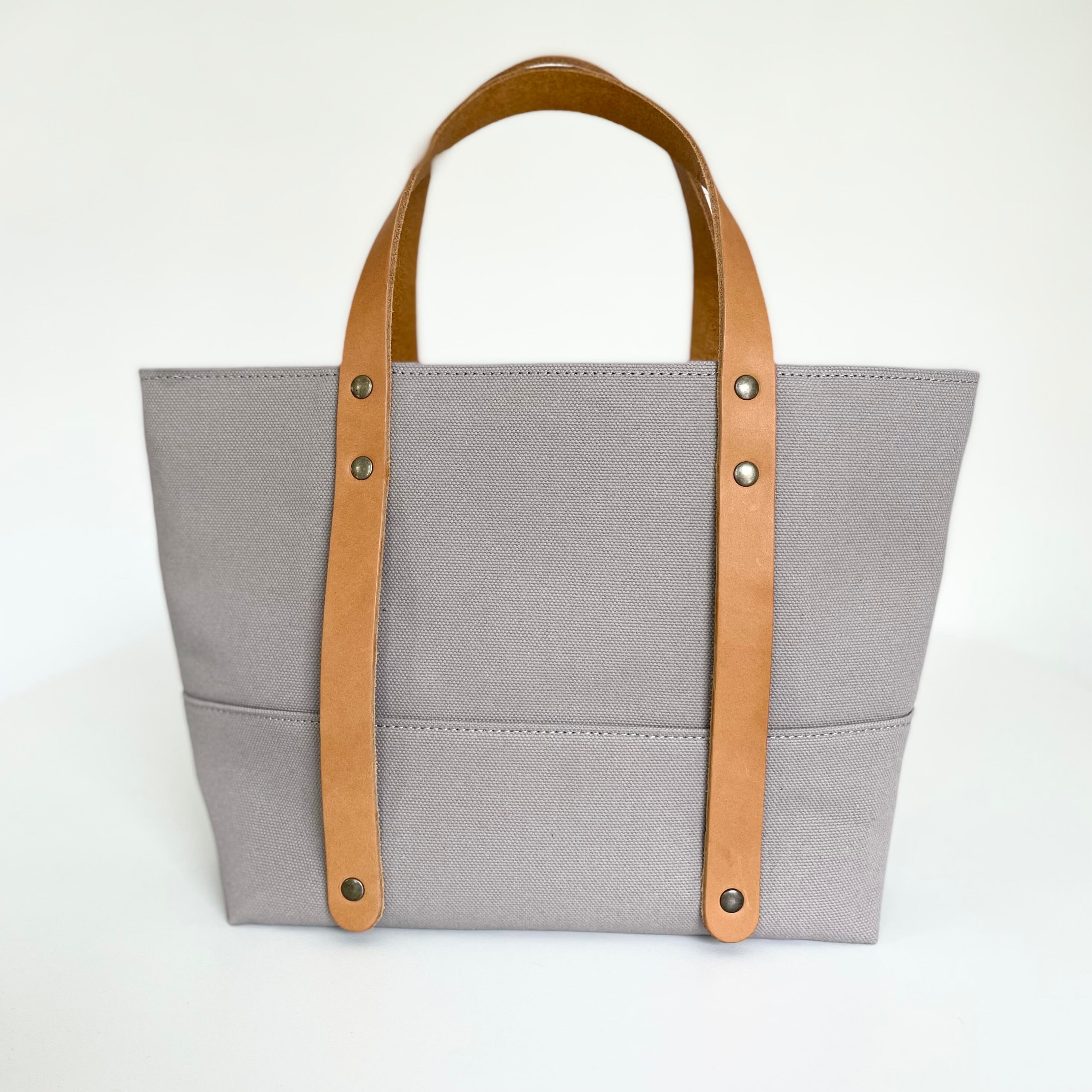 6号帆布と極厚ヌメ革のトートバッグ S-size【グレー】