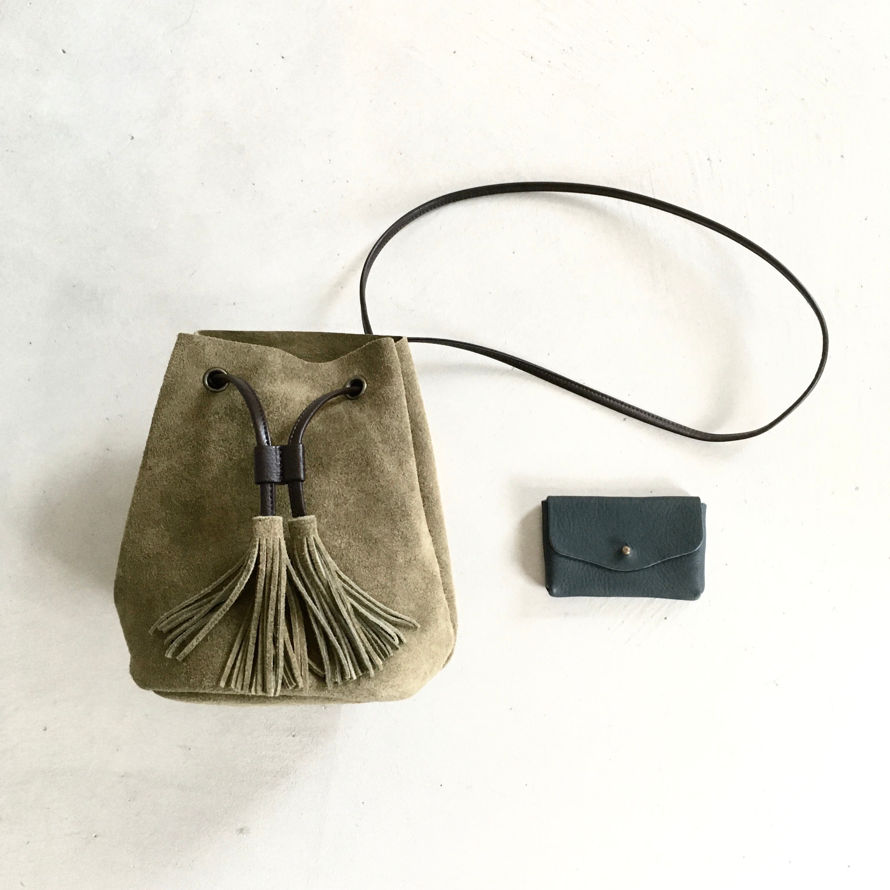 牛床ベロアのタッセル付2WAY巾着バッグです。
