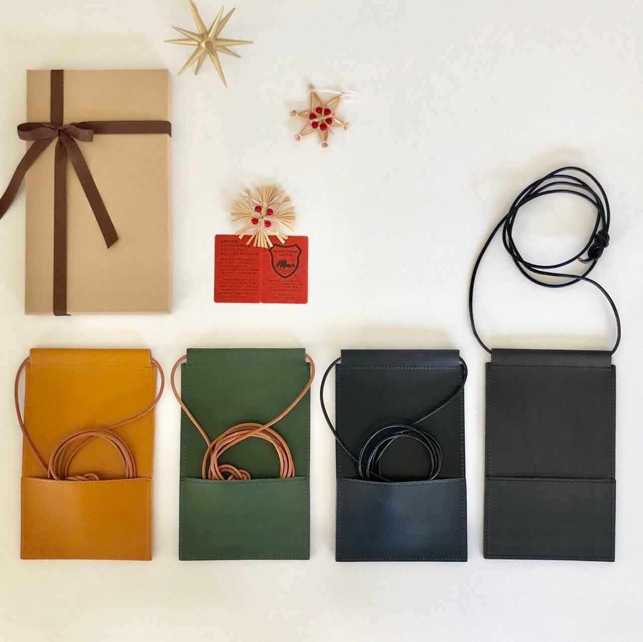 栃木レザー ヌメ革のスマホポシェット 選べる無料or有料刻印【4色展開】