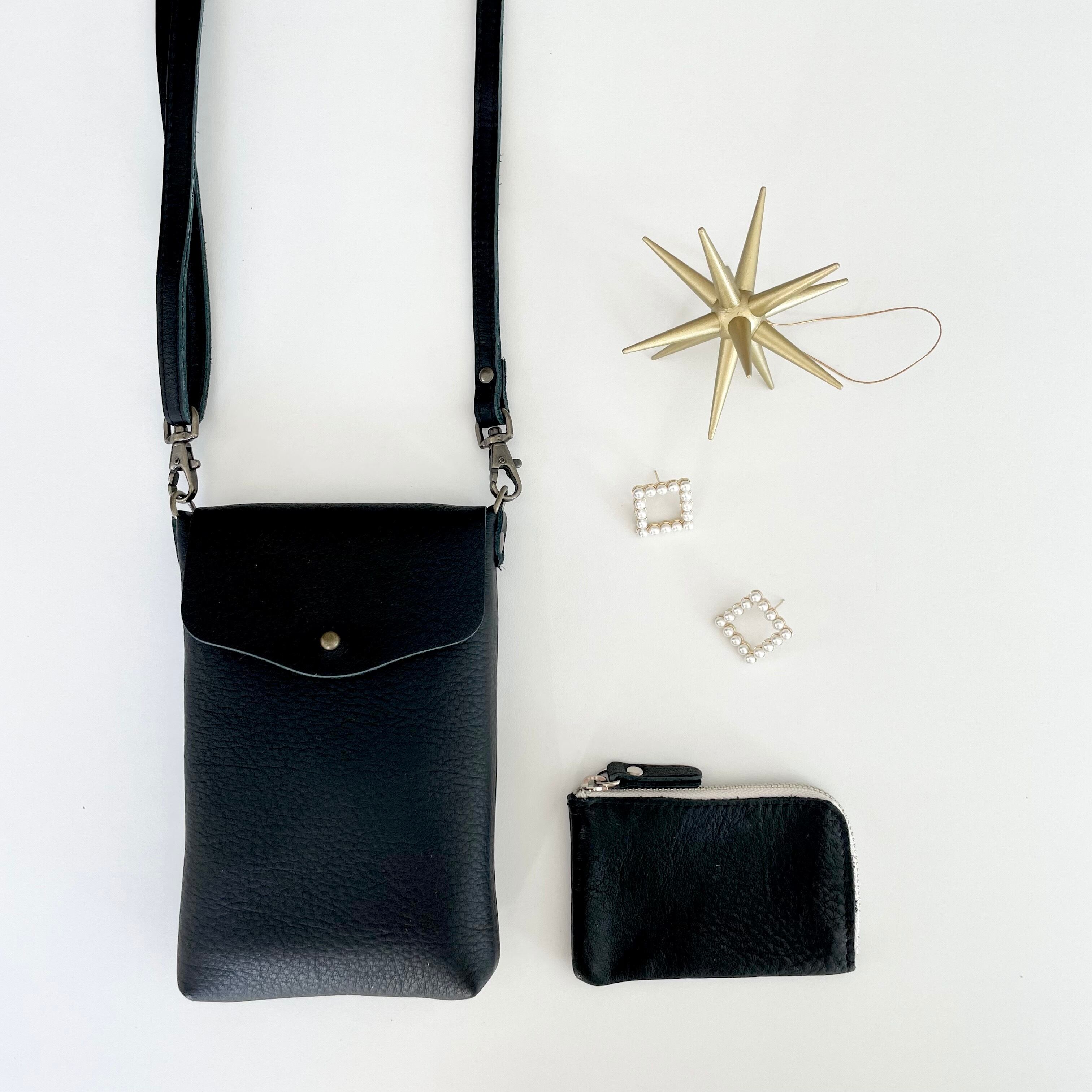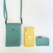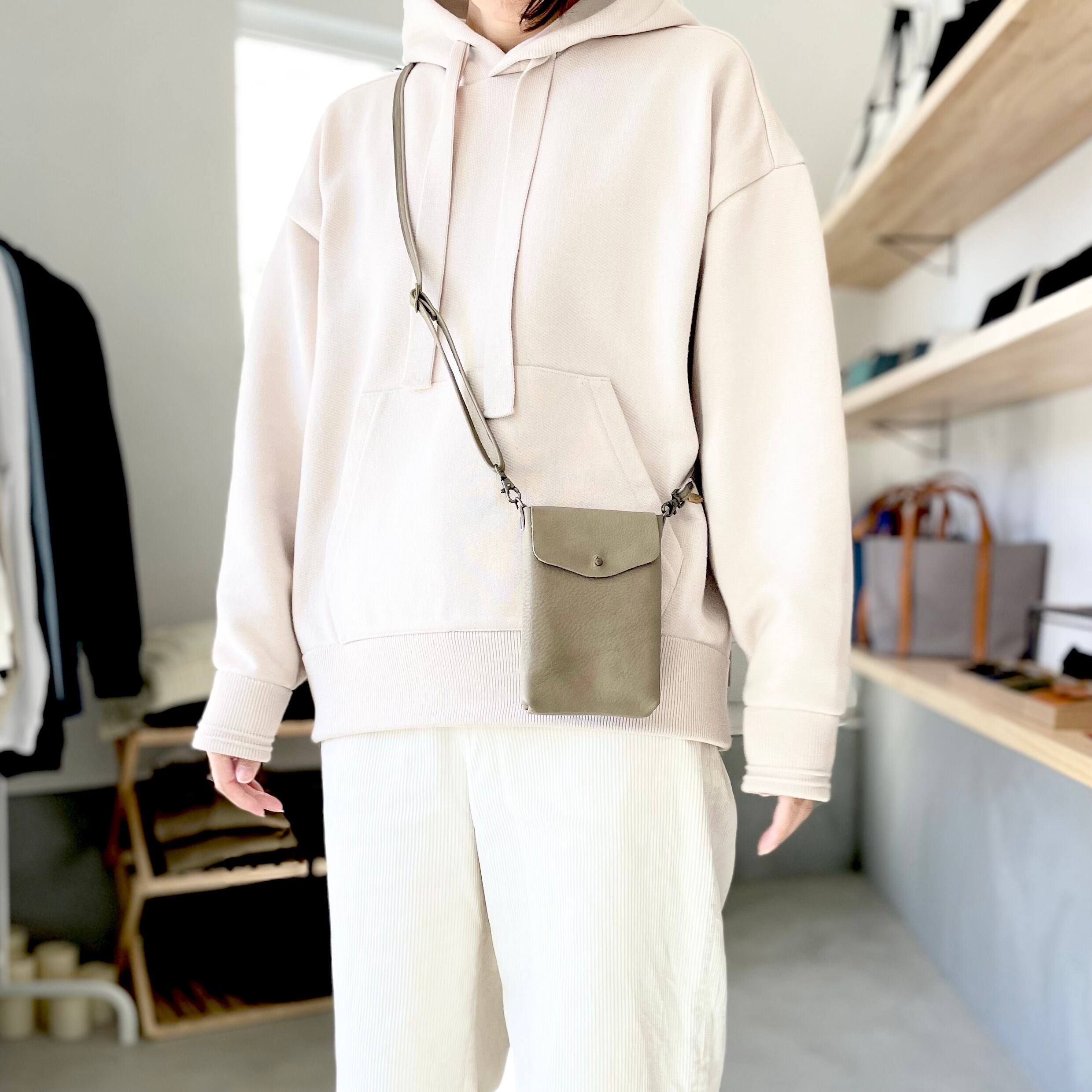 携帯電話やミニマルコインケースがスッポリとおさまるシンプルスマホポシェット。
