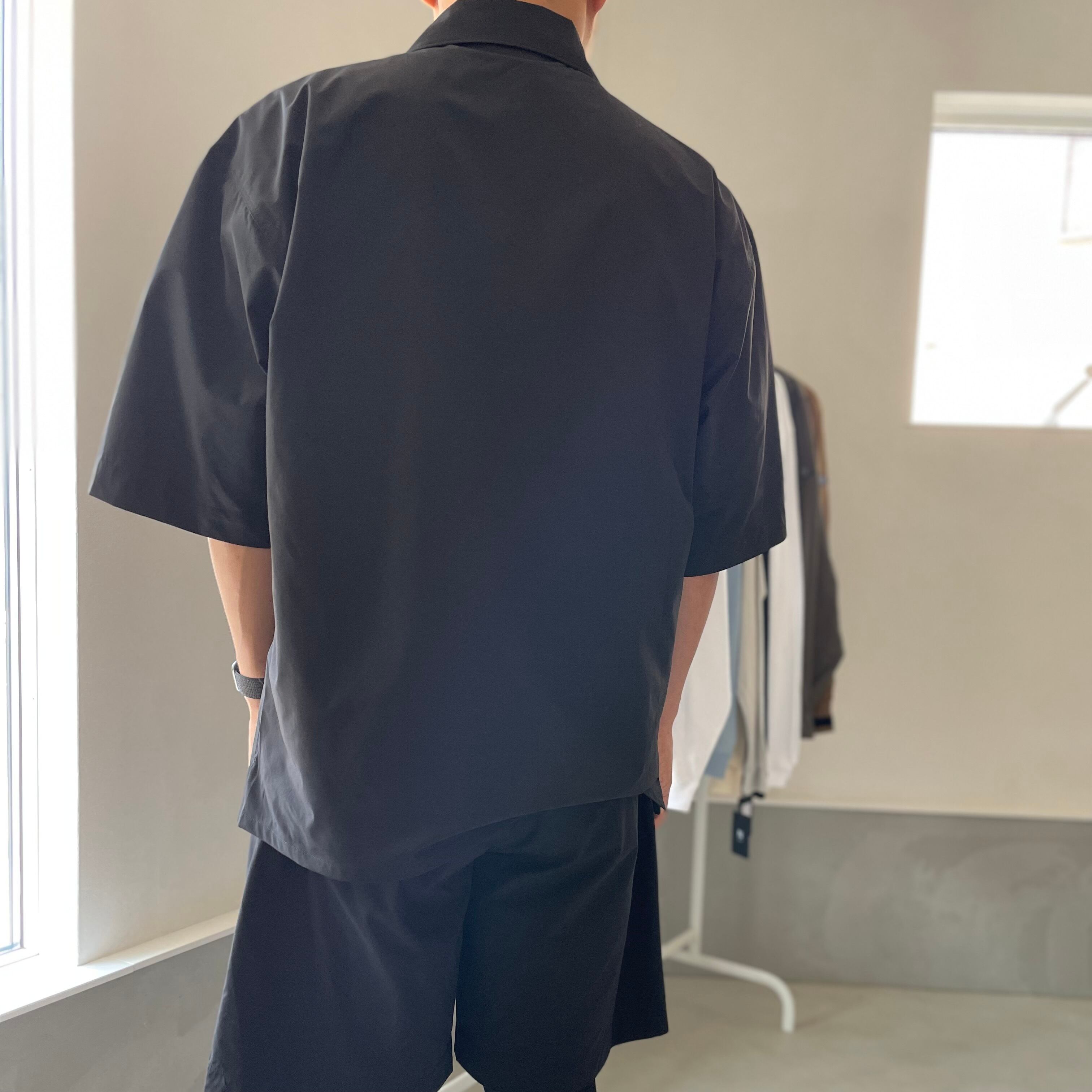 【ユニセックス 】4WAYストレッチ ルーズフィット シャツ【ブラック】