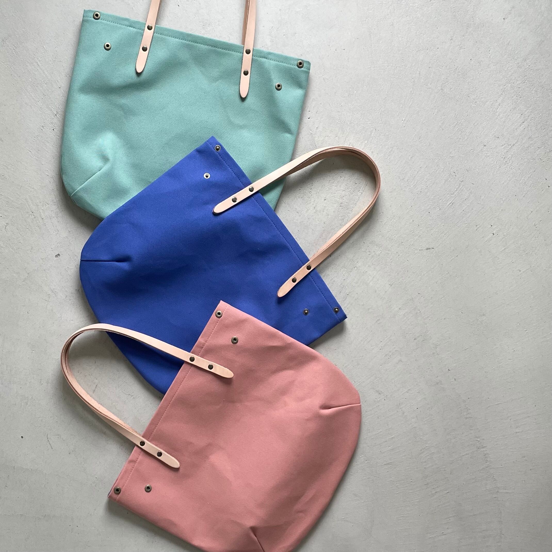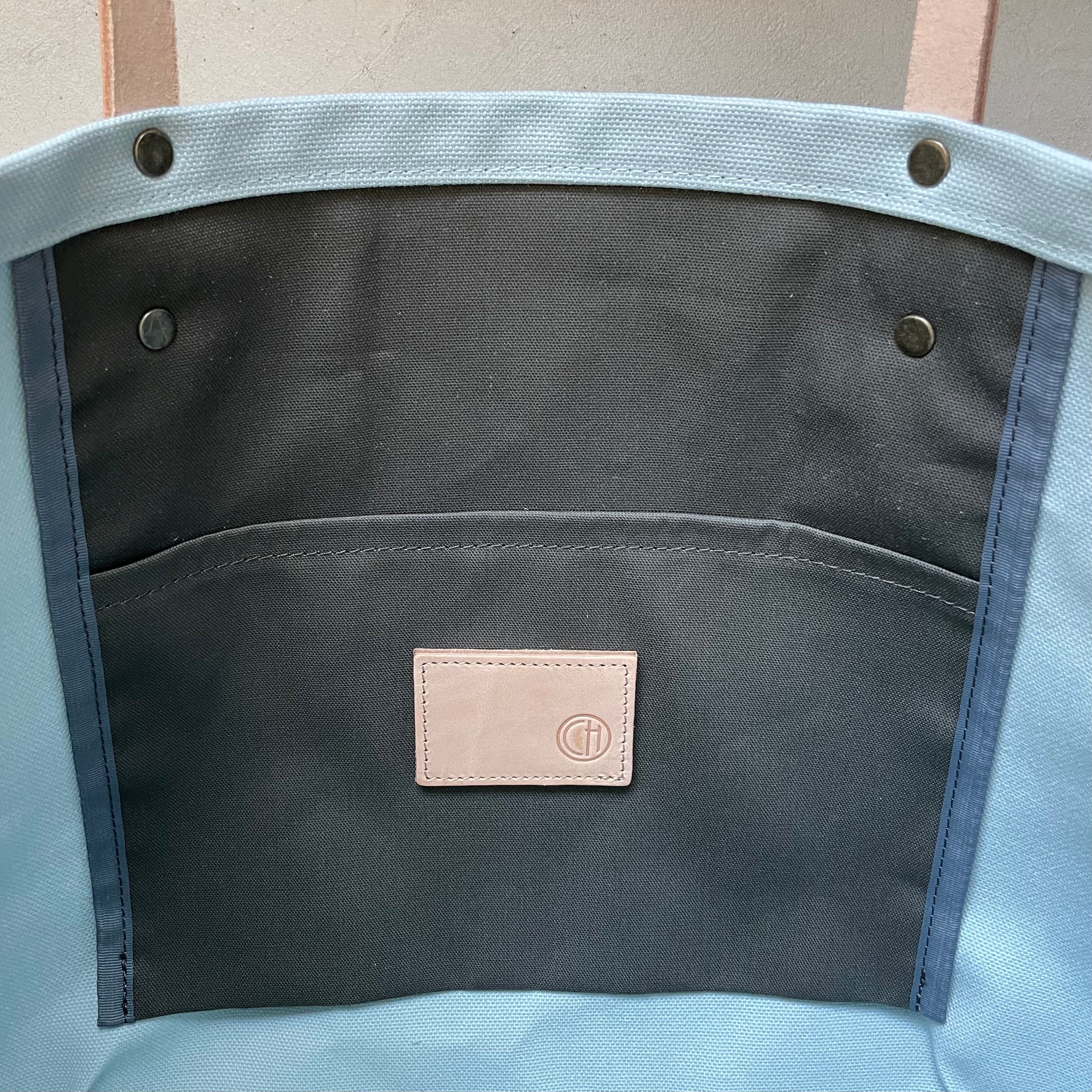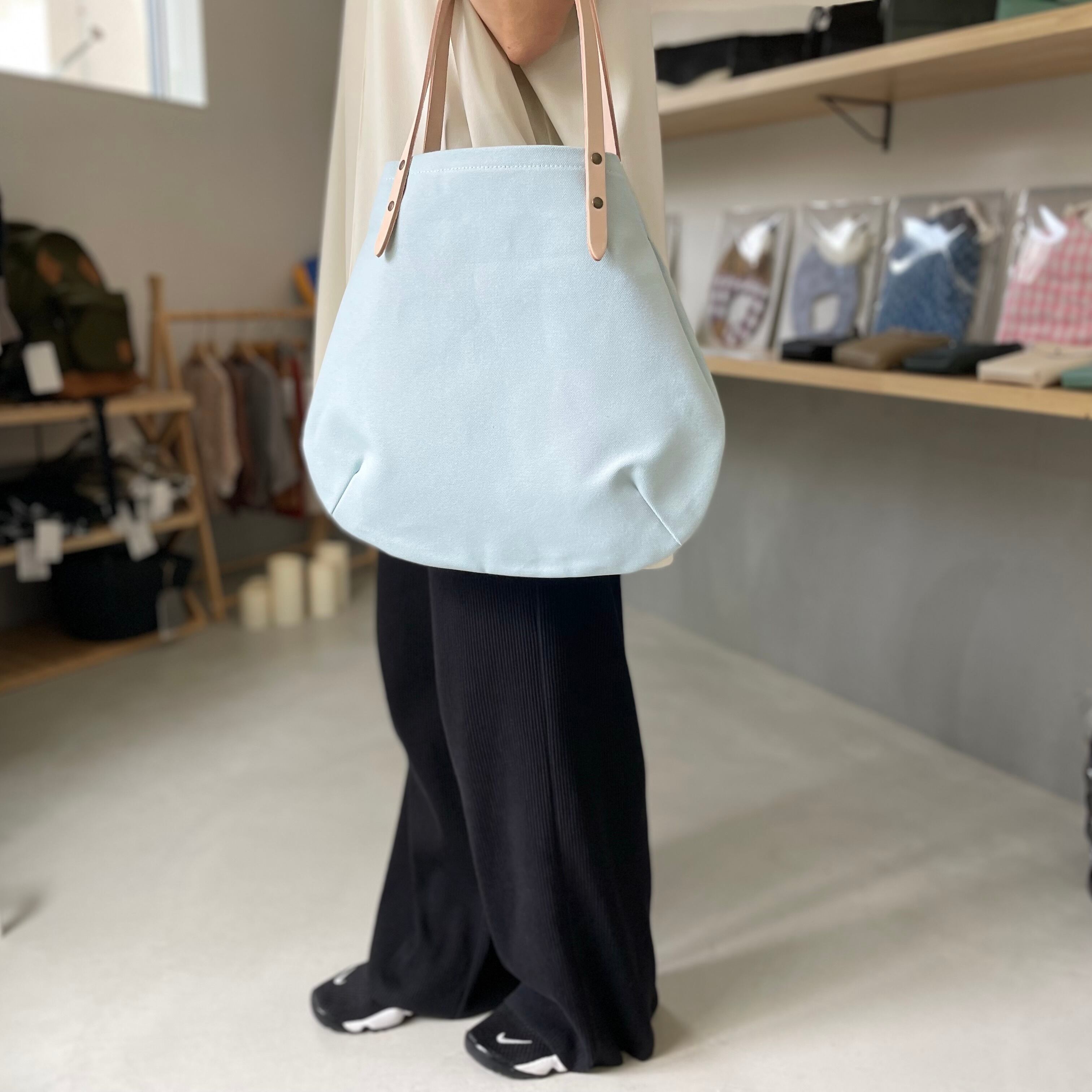 8号帆布と極厚ヌメの丸型トートバッグ-Mサイズ【アイスブルー】