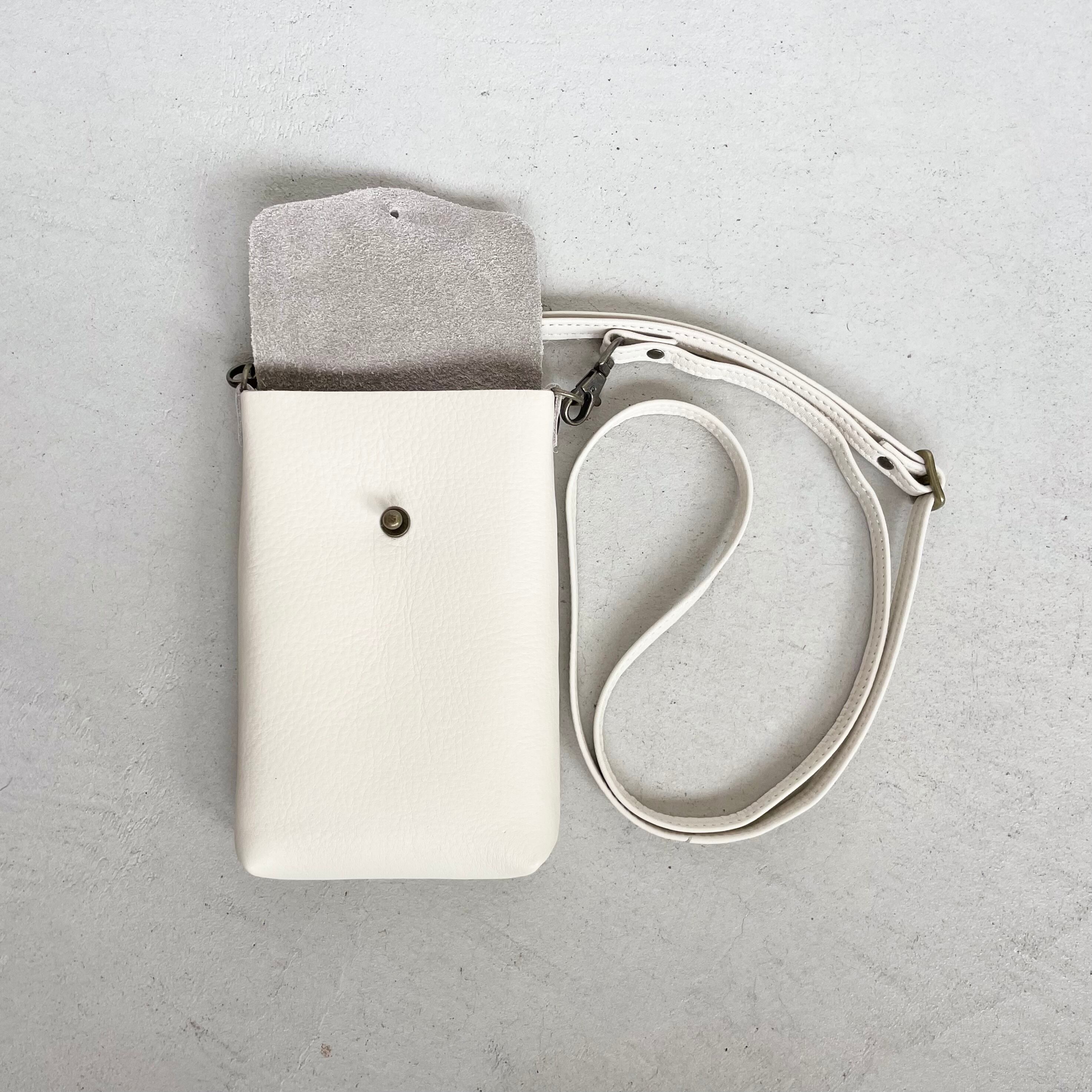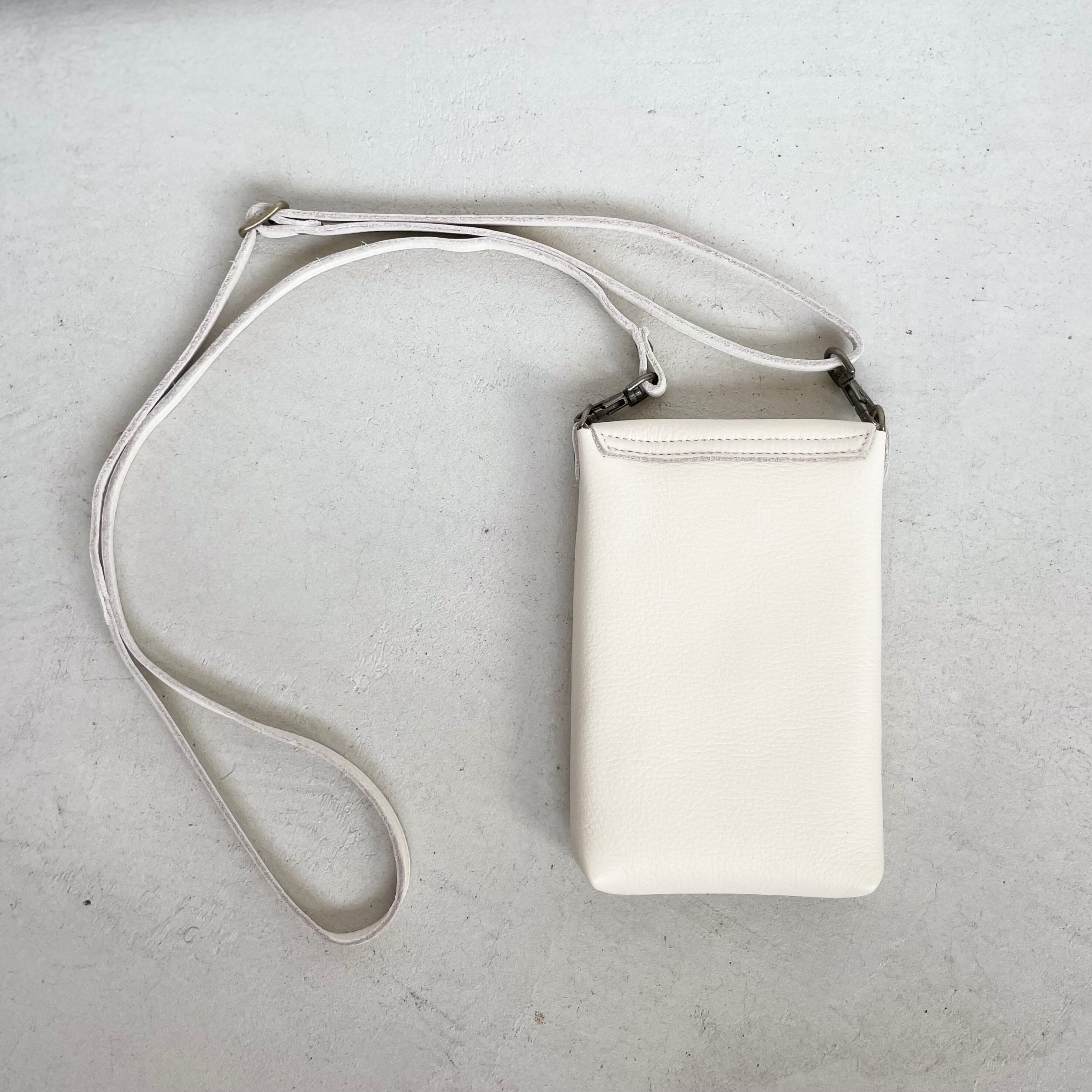 【2023再販】牛シュリンクレザーのスマホポシェット【オフホワイト】