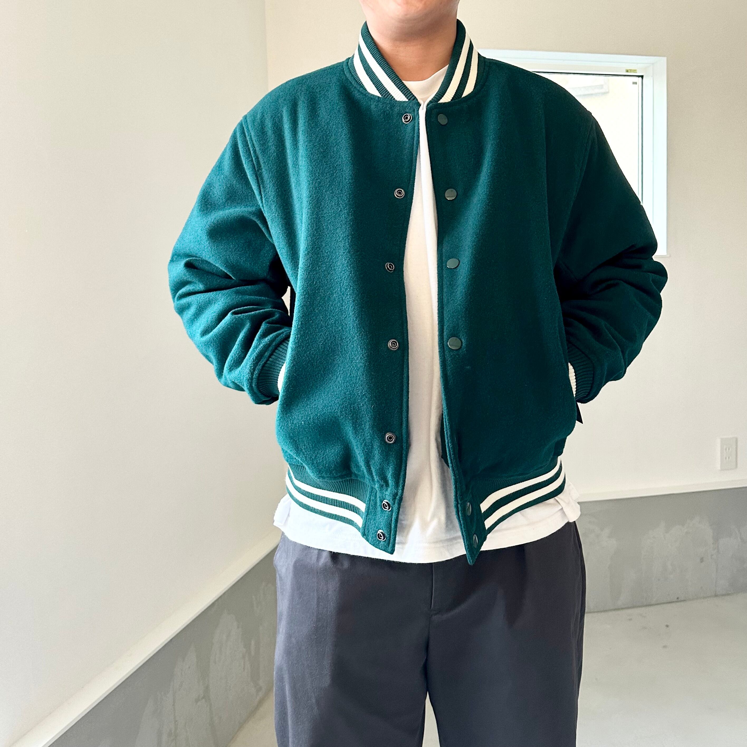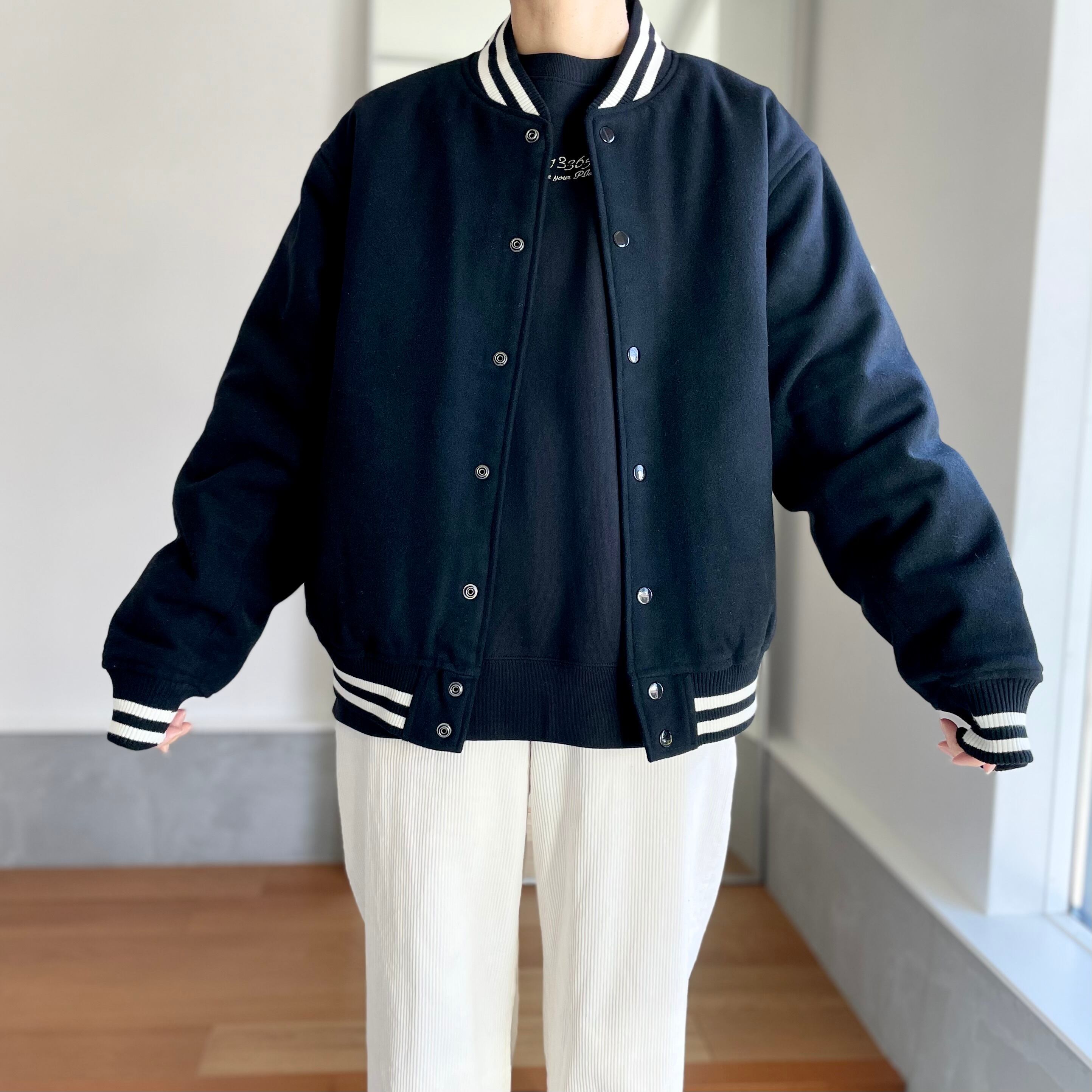 厚地のメルトンを使用した本格仕様のスタジアムジャケット。