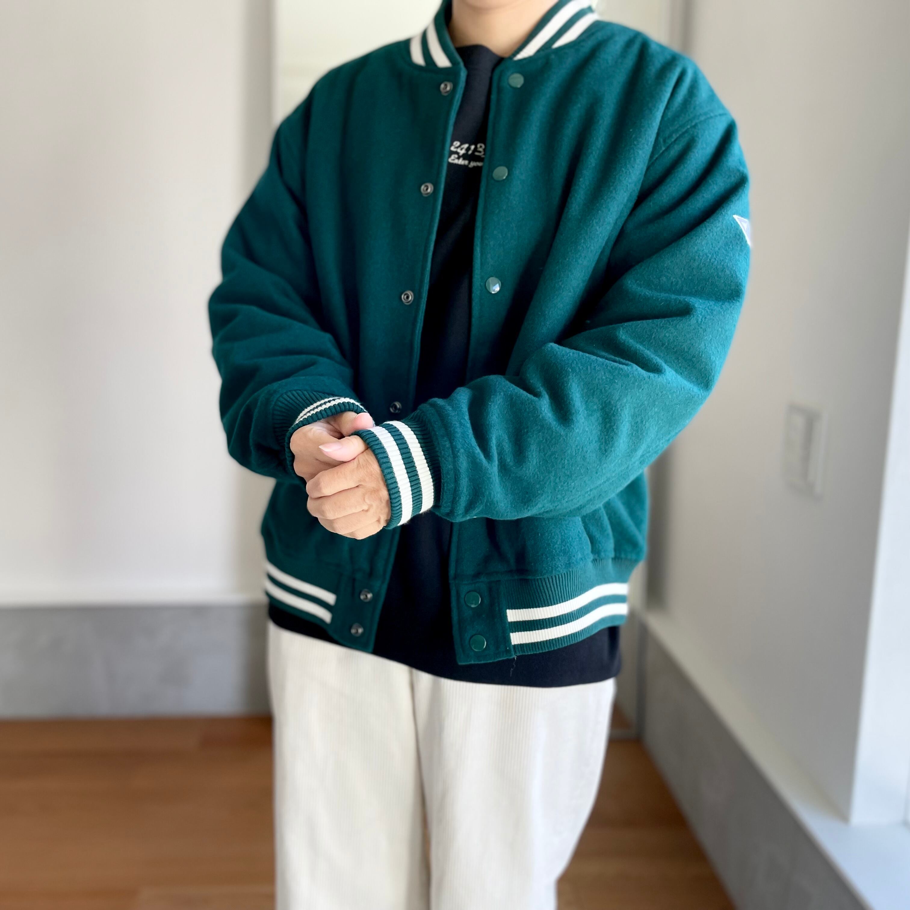 【ユニセックス 】メルトン×中綿キルト 防寒スタジャン【ビリヤードグリーン】
