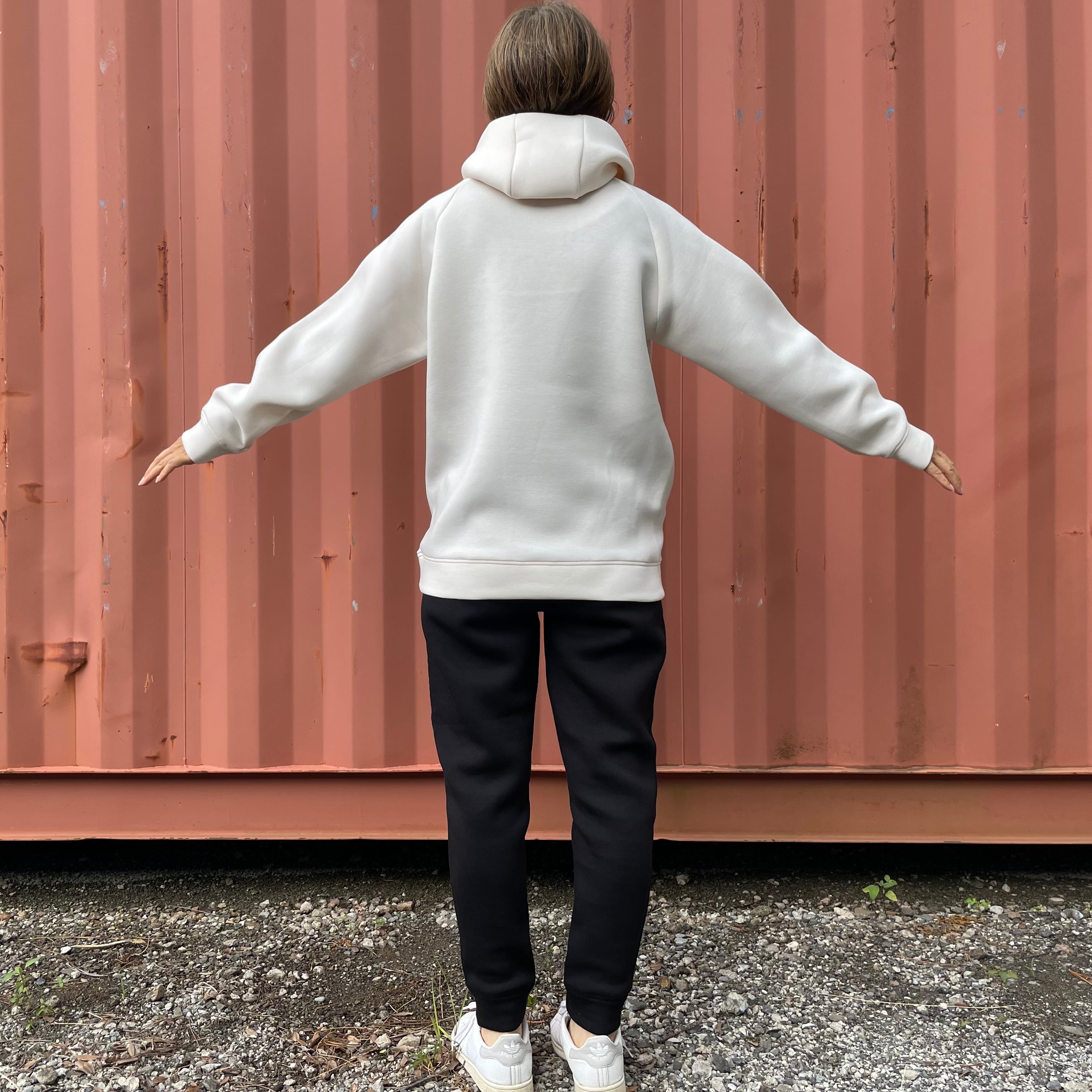 ブラックとオフホワイトとベージュは、女性162cm Mサイズ着用です。