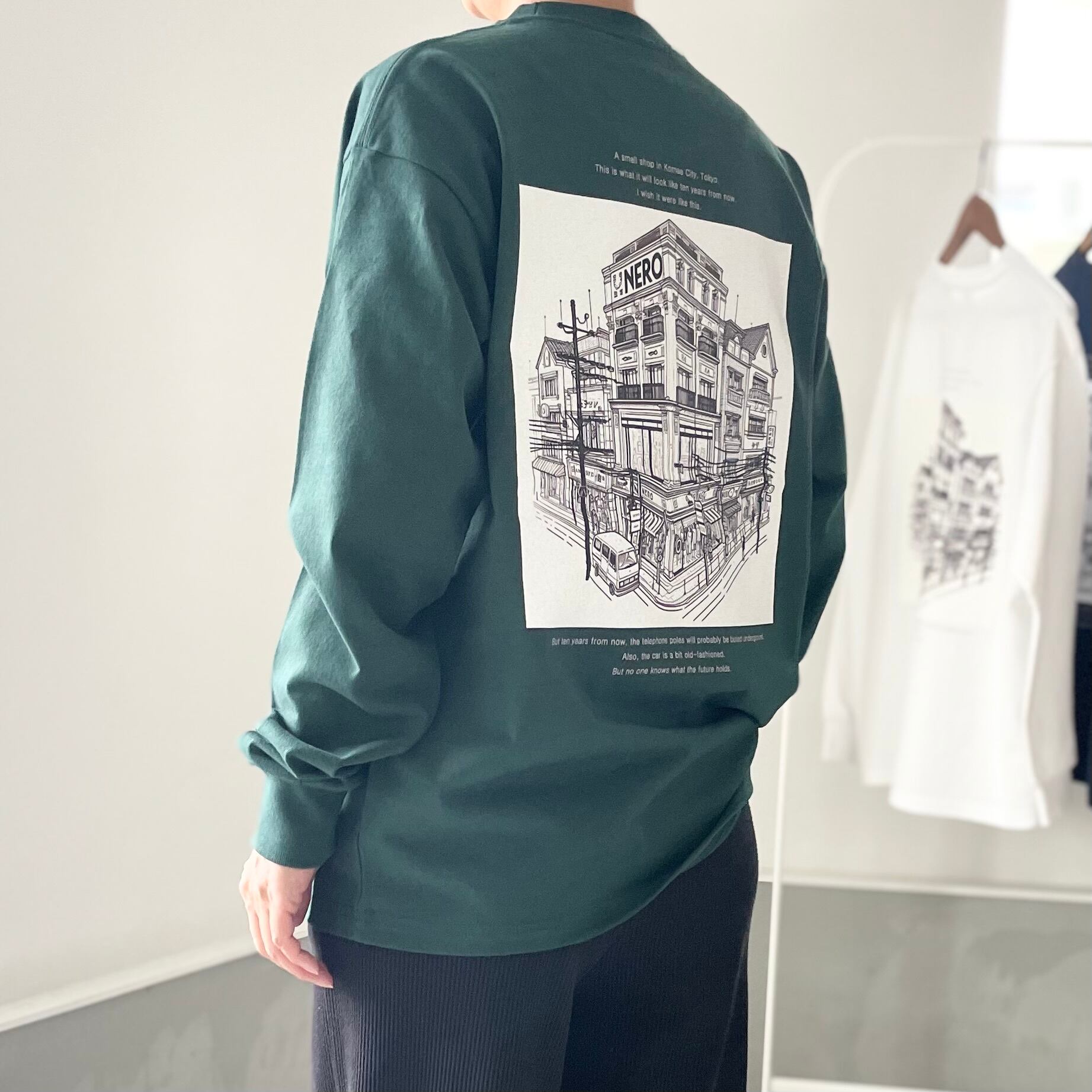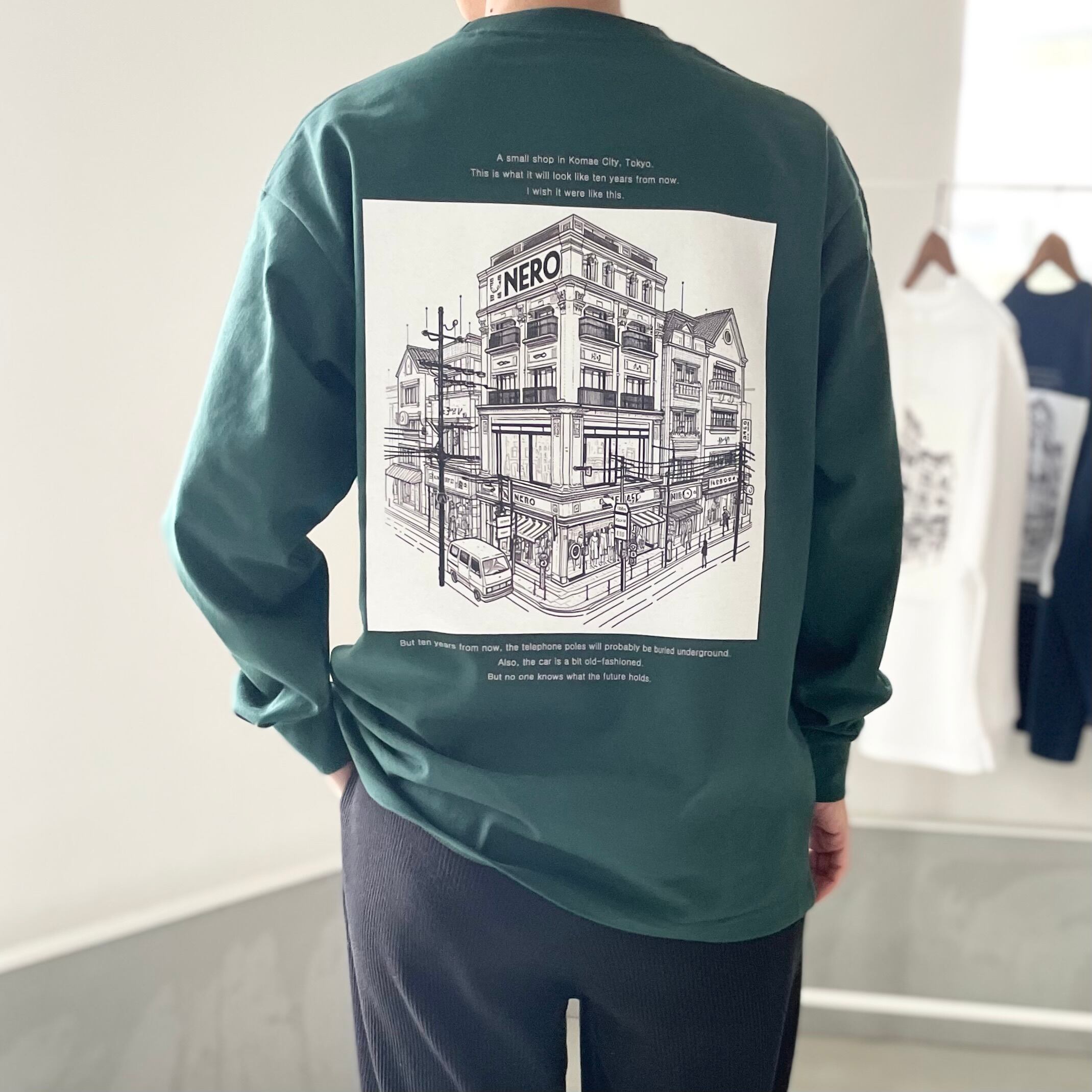 【ユニセックス】秋〜春まで!厚手USAコットン バックプリント ロングスリーブTシャツ 5色展開 【グリーン】