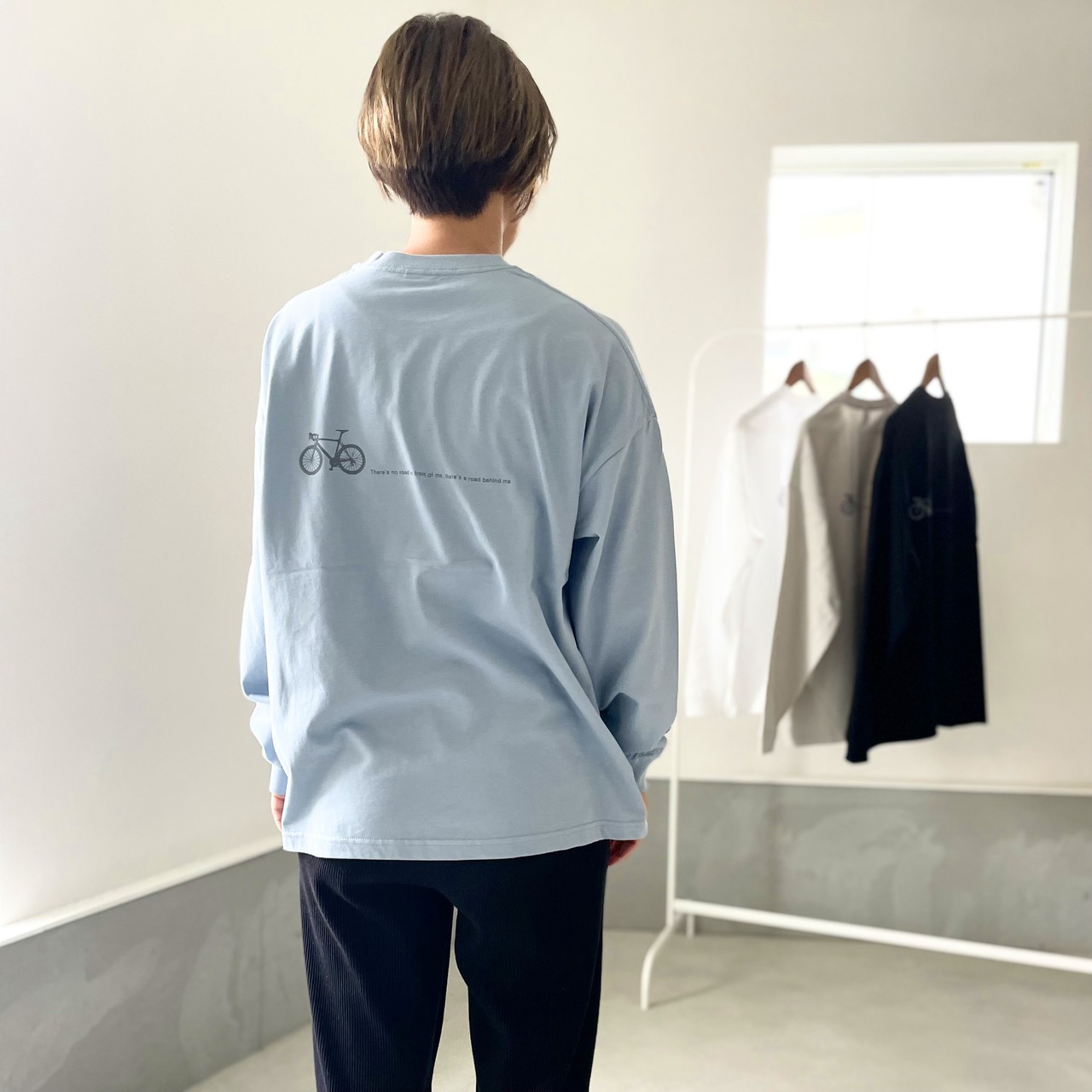 【ユニセックス 】bicycleプリント ビッグシルエット ロングスリーブTシャツ【アシッドブルー】