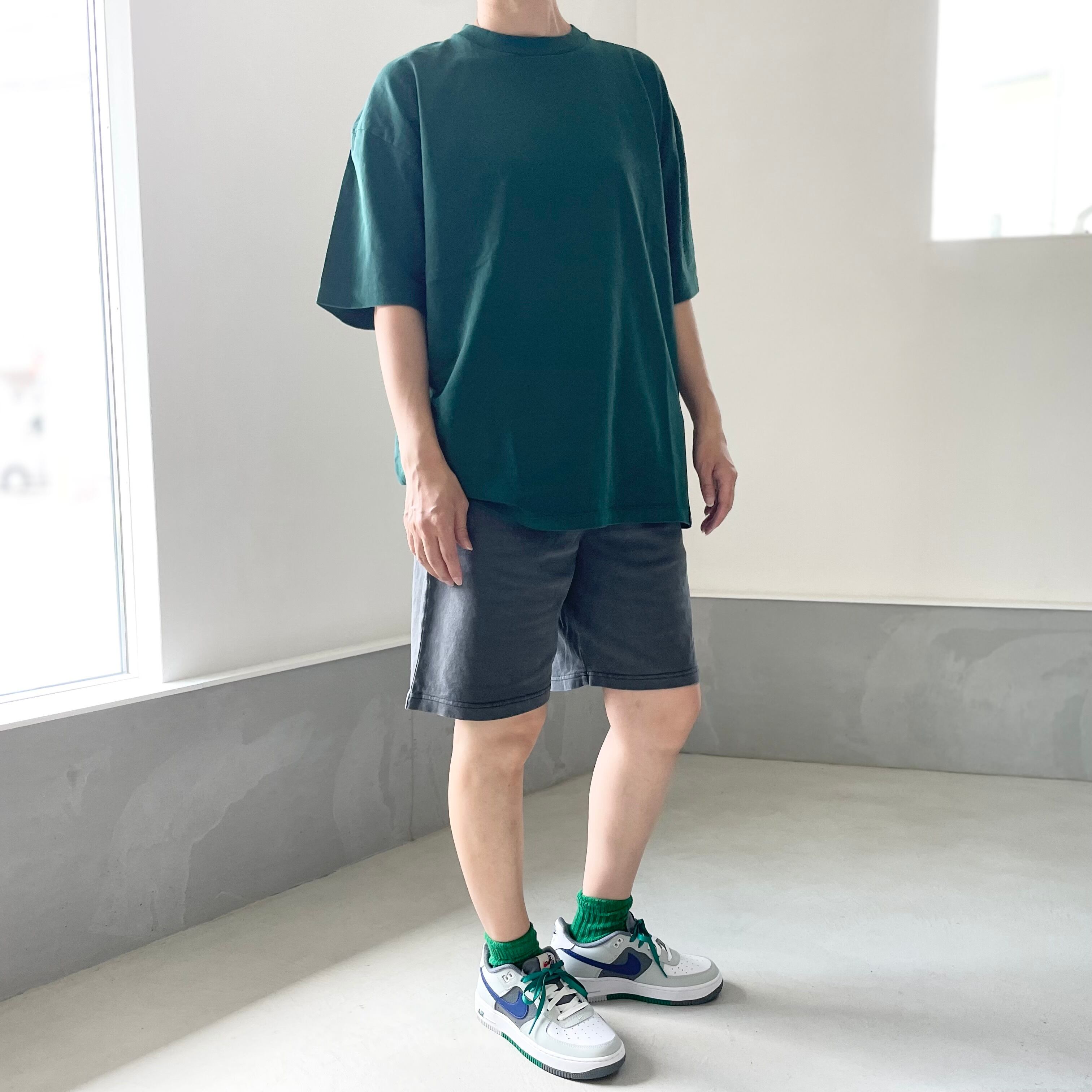 【ユニセックス】ピグメント加工ビッグシルエットTシャツ【グリーン】