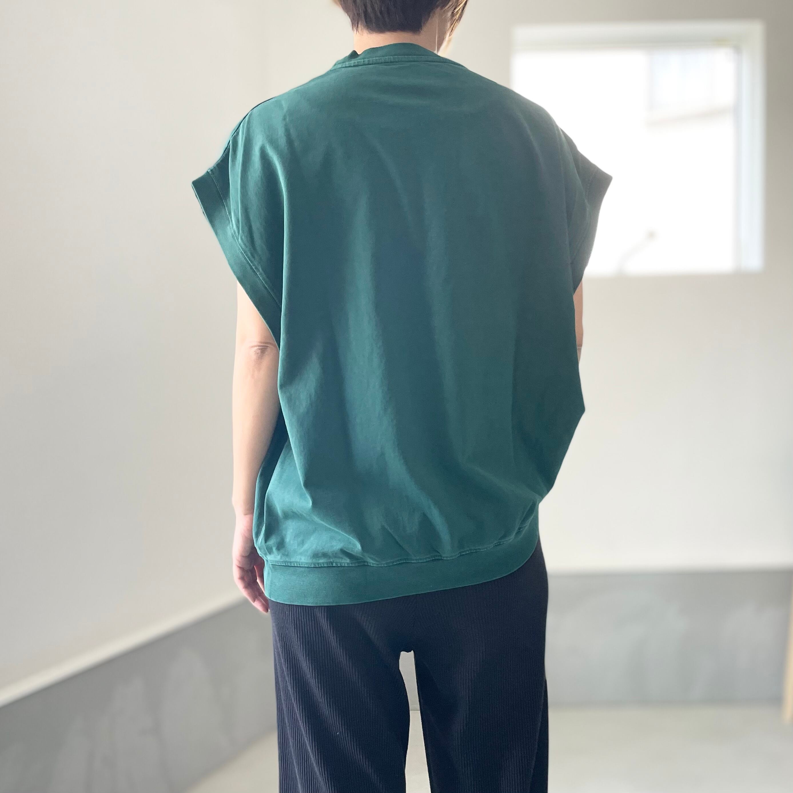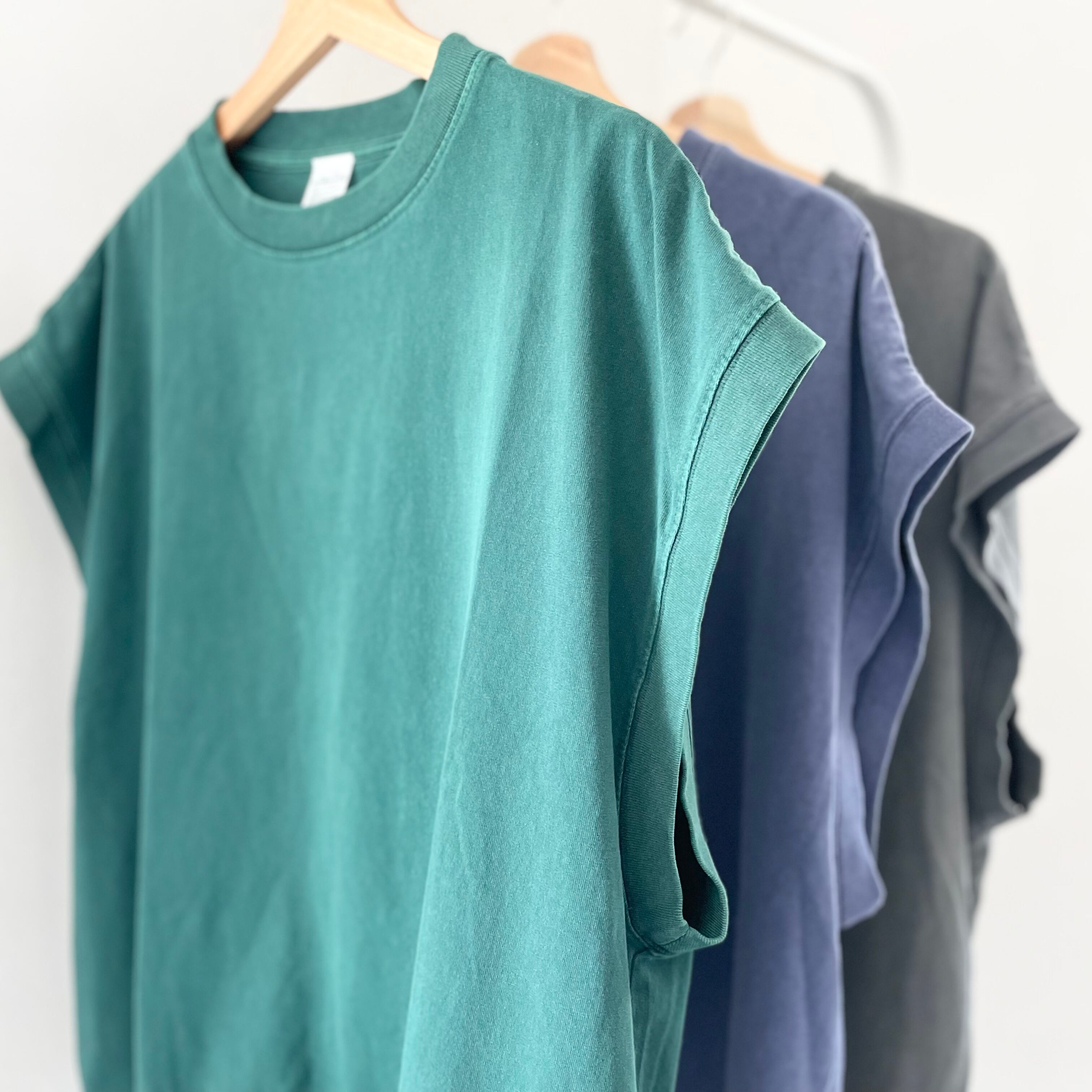 【ユニセックス】ピグメント加工ビッグシルエットノースリーブTシャツ【グリーン】